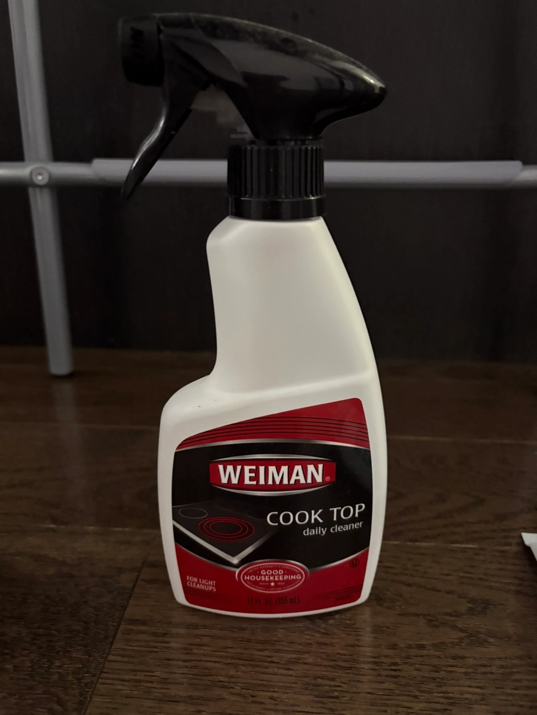 Spray bottle of Weiman Cook Top daily cleaner. For light cleanups. 12 fl oz (355ml).