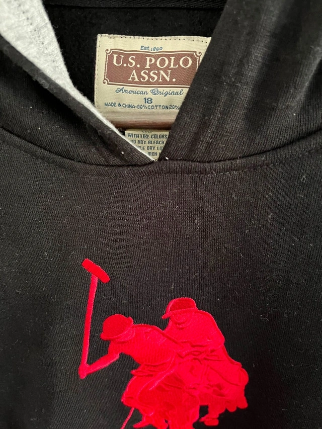 Boys/Youth US Polo Association (USPA) Super Soft Fleece Sweater. Colour: Black with Red Embroidered Logo. Size: 18/20, XL Youth - Adult XS/S. Price: $50. Condition: New. For Sale By: Owner.