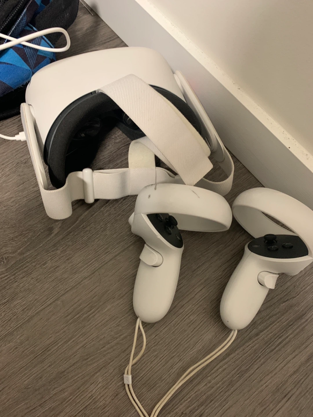 This is a white Meta Quest 2 VR headset. It comes with two controllers. It's a 128GB model.