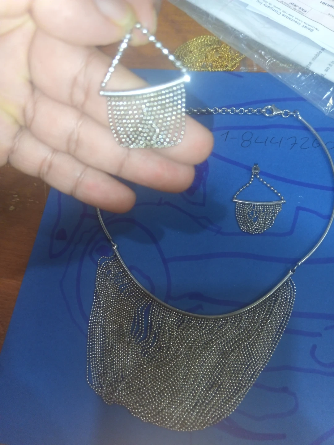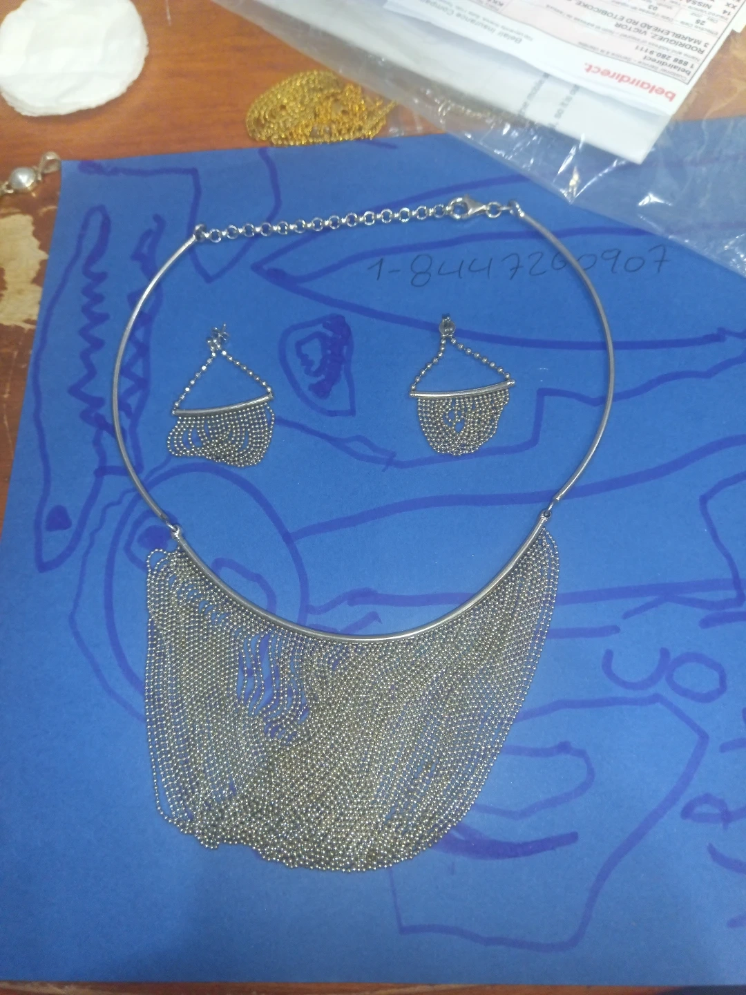 This set includes a statement necklace and matching dangle earrings. The jewellery features a unique fringe design made of small silver-tone beads. Perfect for adding a touch of sparkle to any outfit!