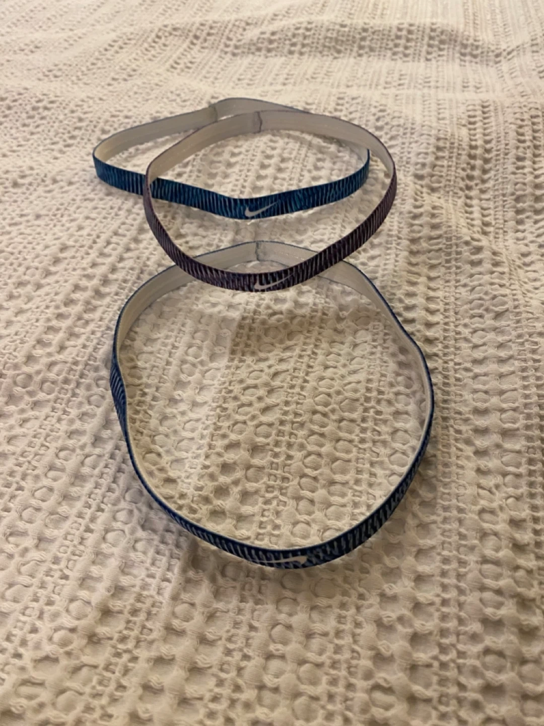 Nike Two blue hair ties with a subtle patterned design. Elastic material, suitable for various hairstyles. These are great for keeping your hair tidy throughout the day!