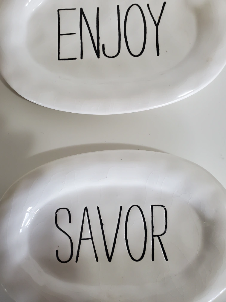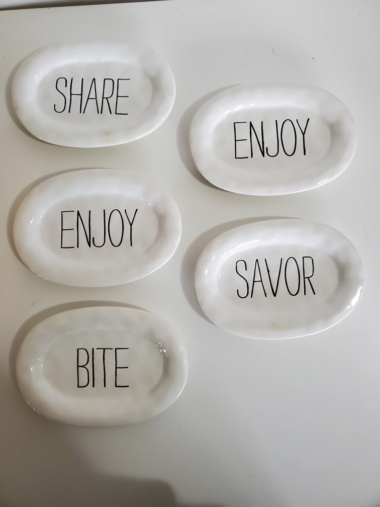 Mud Pie Set Of 5 Appetizer plates Bite Share Savor Enjoy + Bonus