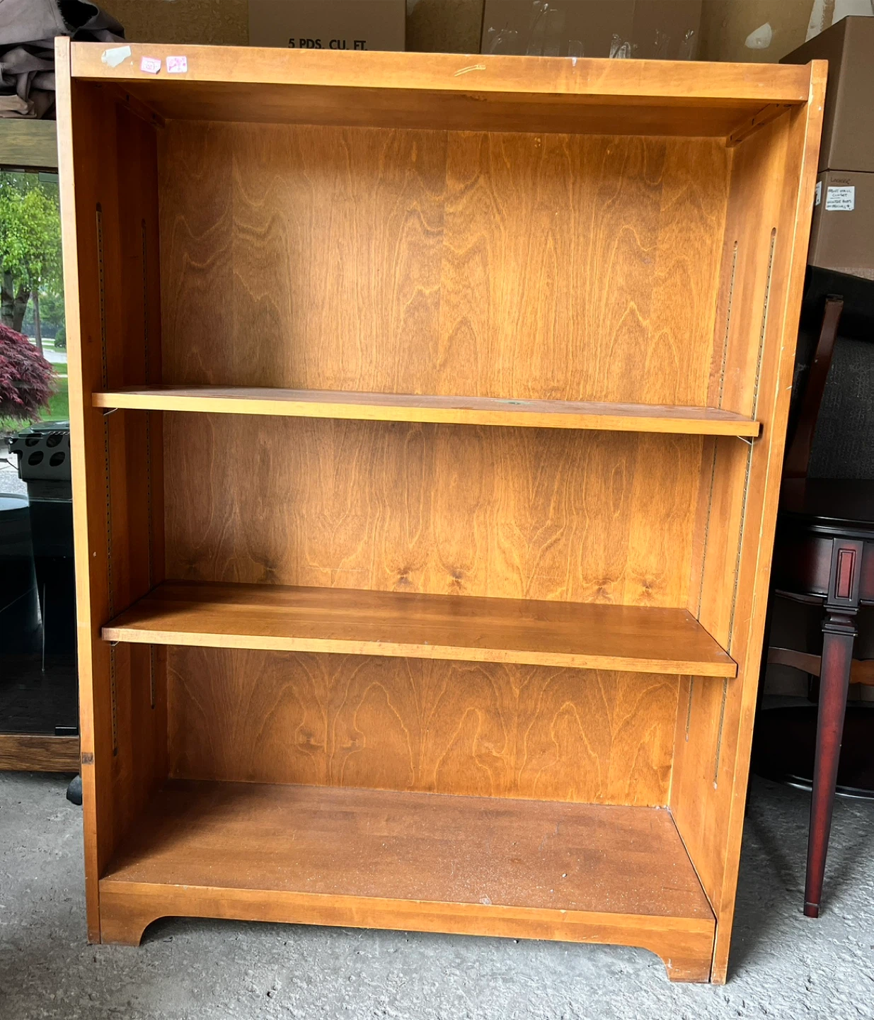 Here's a sturdy wooden bookcase ready for your books or display items! It features three shelves and a classic design. It's in good condition and ready to add some storage to your home
