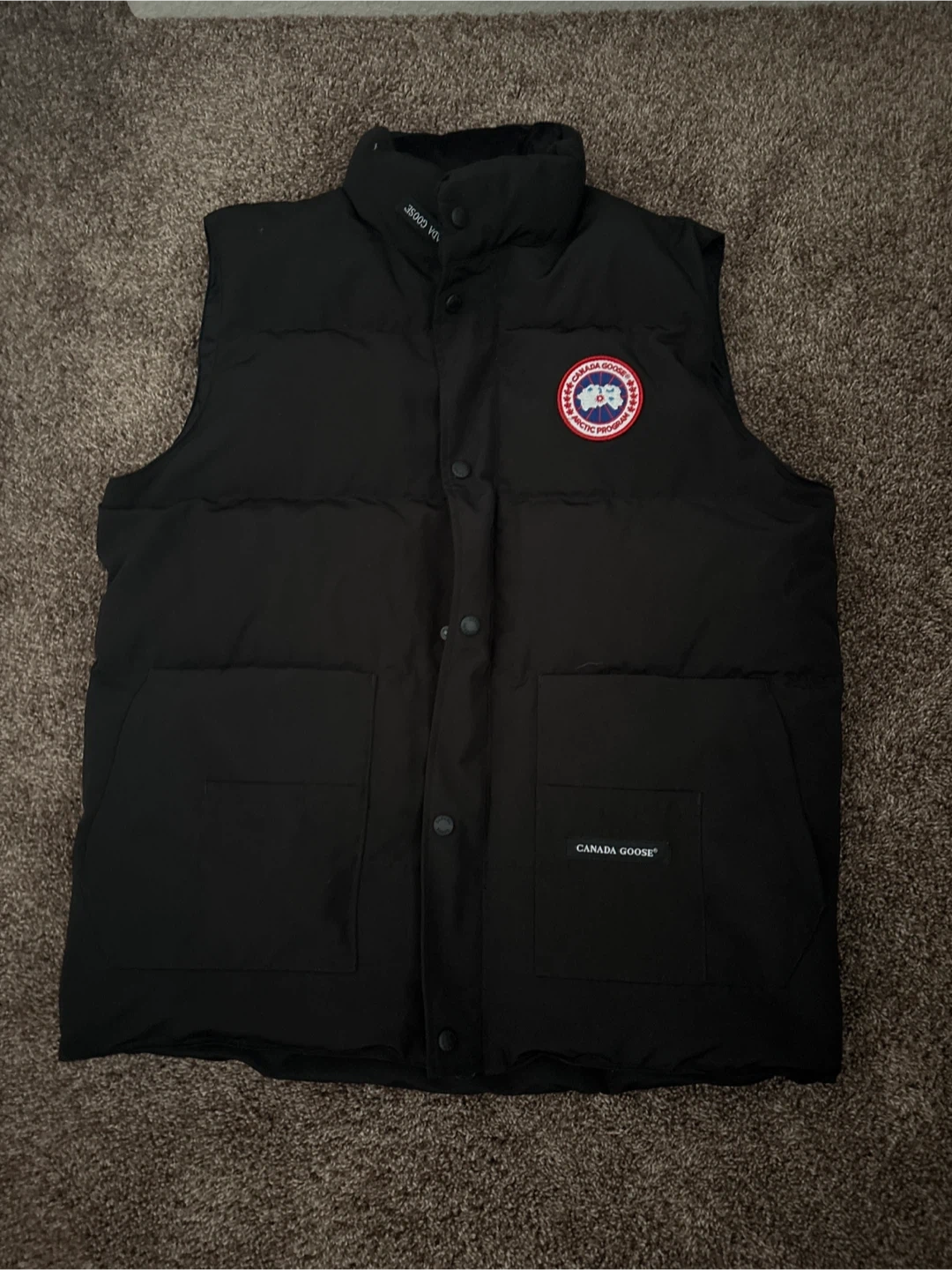 Buy & SellCanada Goose Black Down Vest Arctic ProgramCanada Goose Black Down Vest Arctic Program$100This is a Canada Goose vest from the Arctic Program line. It's black and filled with down and feathers. A great piece for cooler weather!SizeMmBrandCanada GooseWHERE TO MEETCheck LocationView MapSELLERverifiedAidenLegacy903 reviews2 chats·1 favorites·26 viewsSEND CHAT TO SELLERHi Aiden! I’m interested in your listing.Hi Aiden! I’m interested in your listing.Get the Karrot app to chatSign In to chat