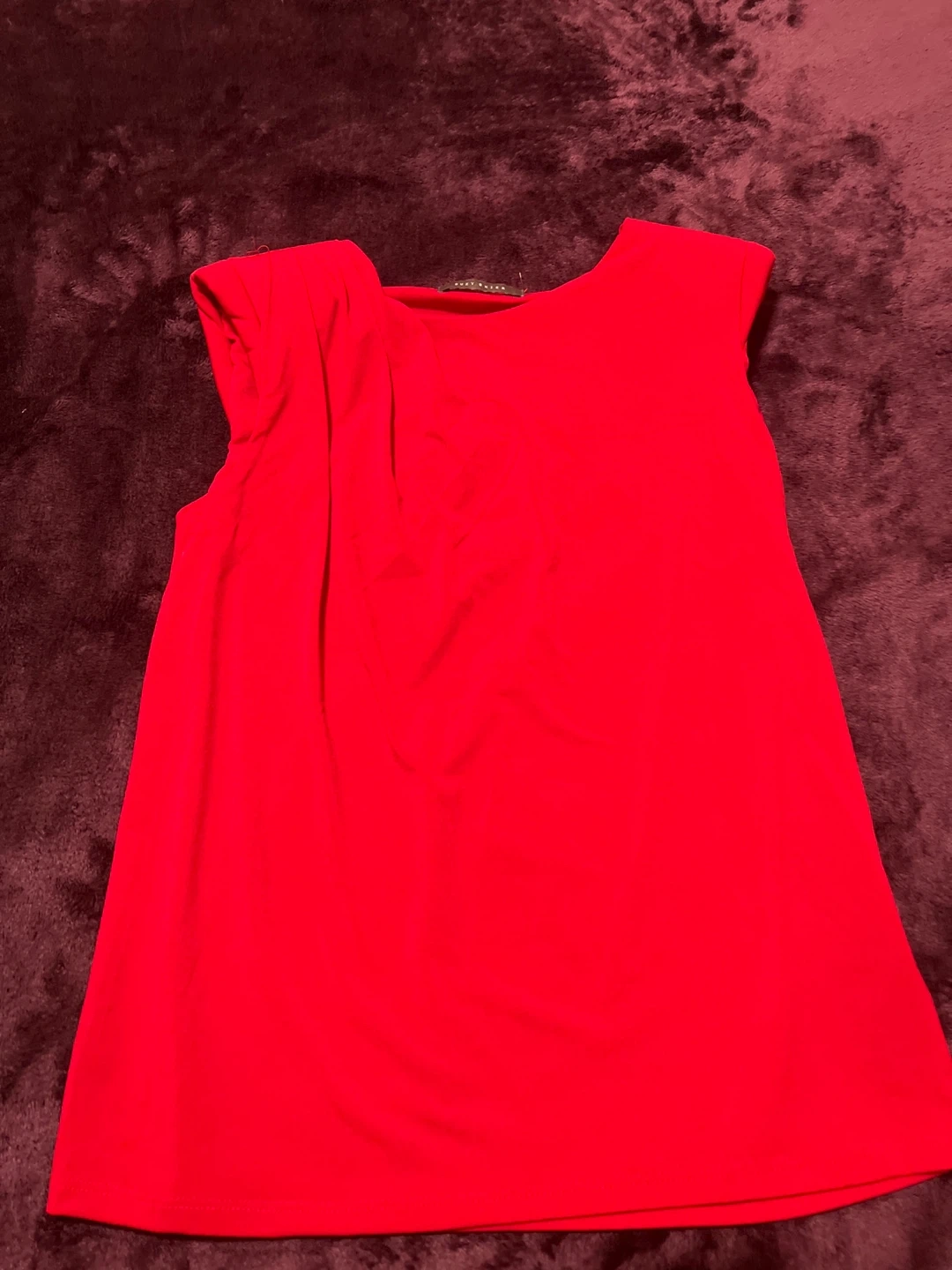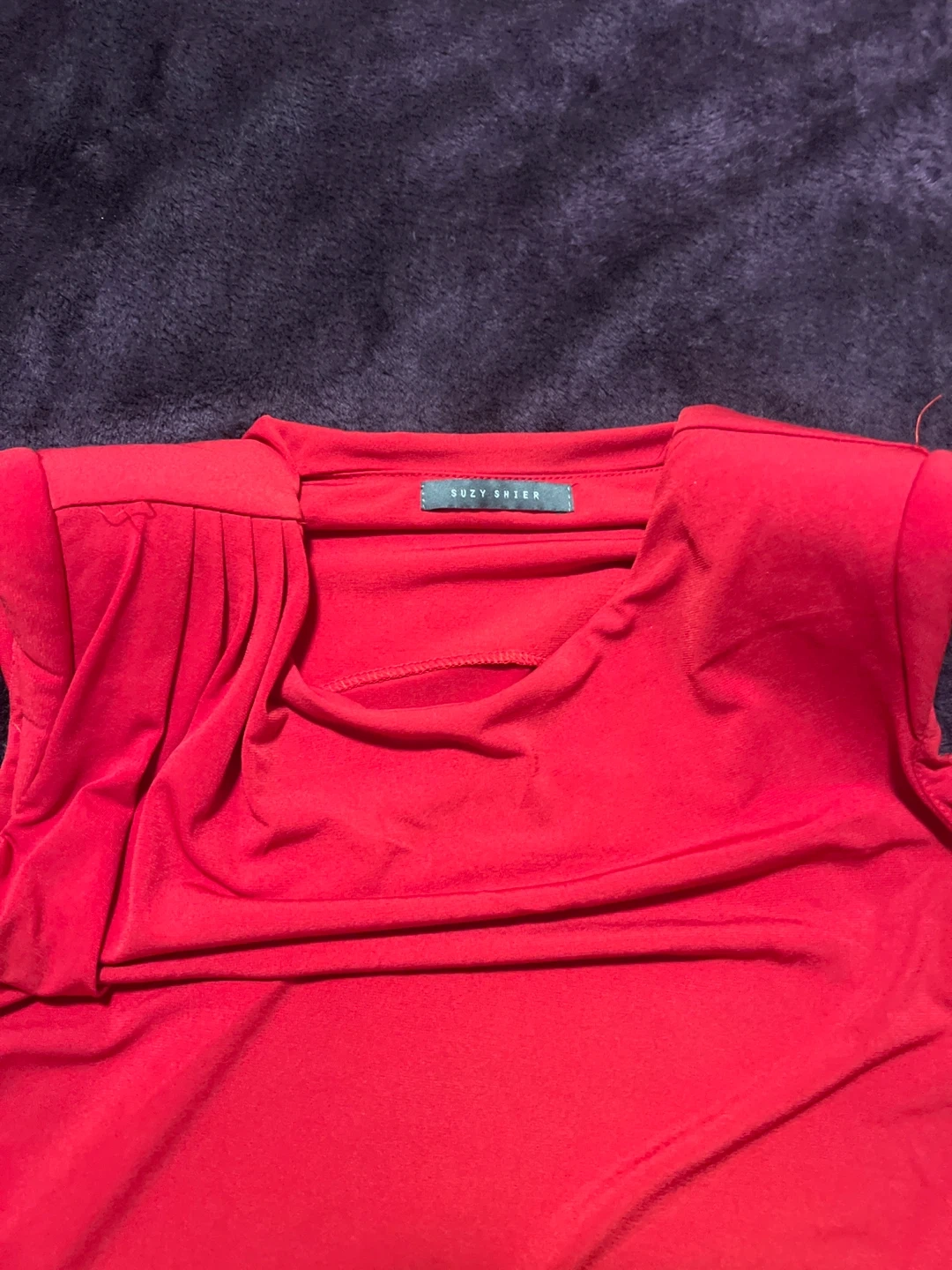 Selling a cute red top from Suzy Shier! It's a size XS and made of 92% polyester and 8% spandex. Perfect for adding a pop of colour to your wardrobe