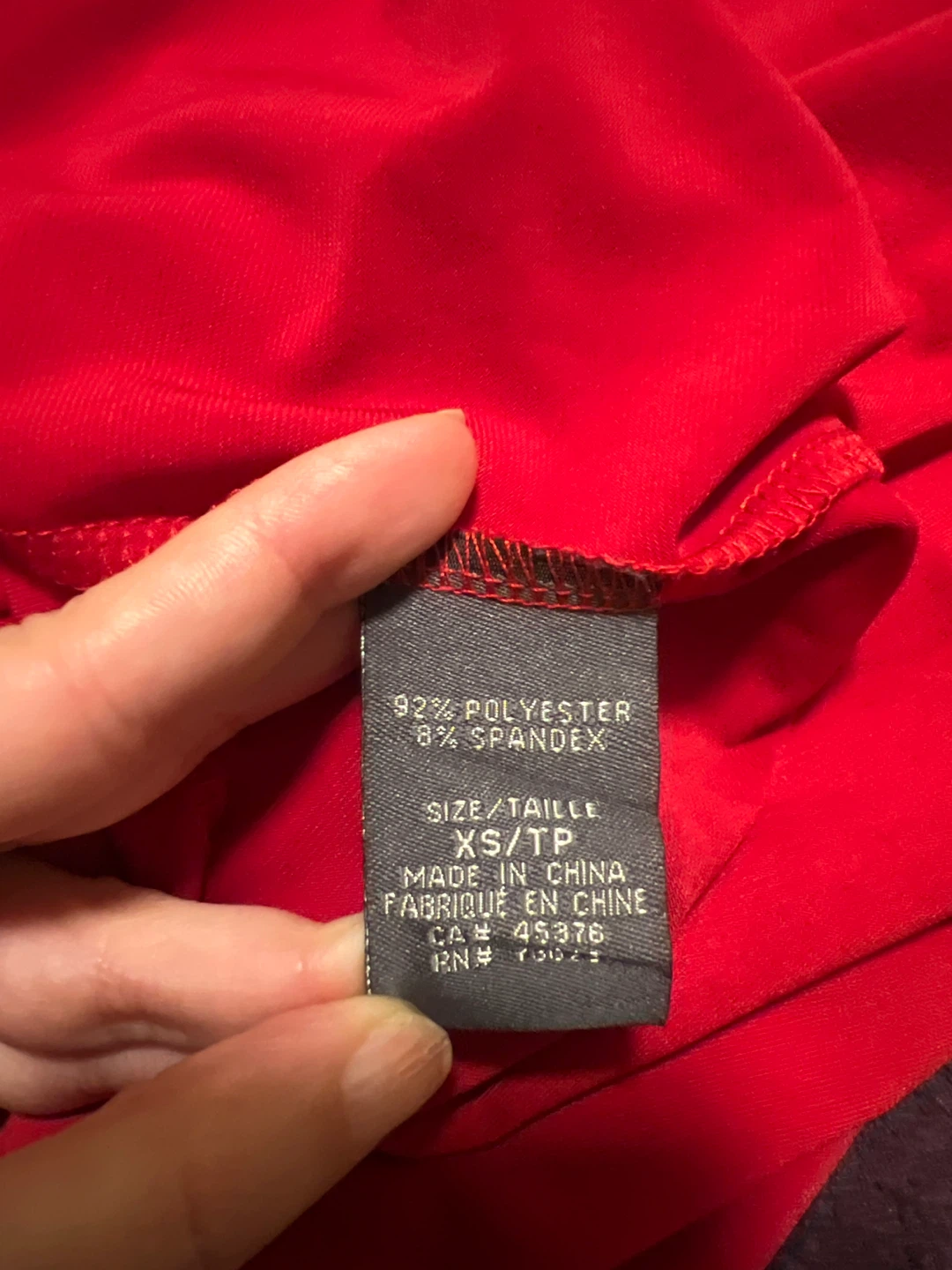 Selling a cute red top from Suzy Shier! It's a size XS and made of 92% polyester and 8% spandex. Perfect for adding a pop of colour to your wardrobe