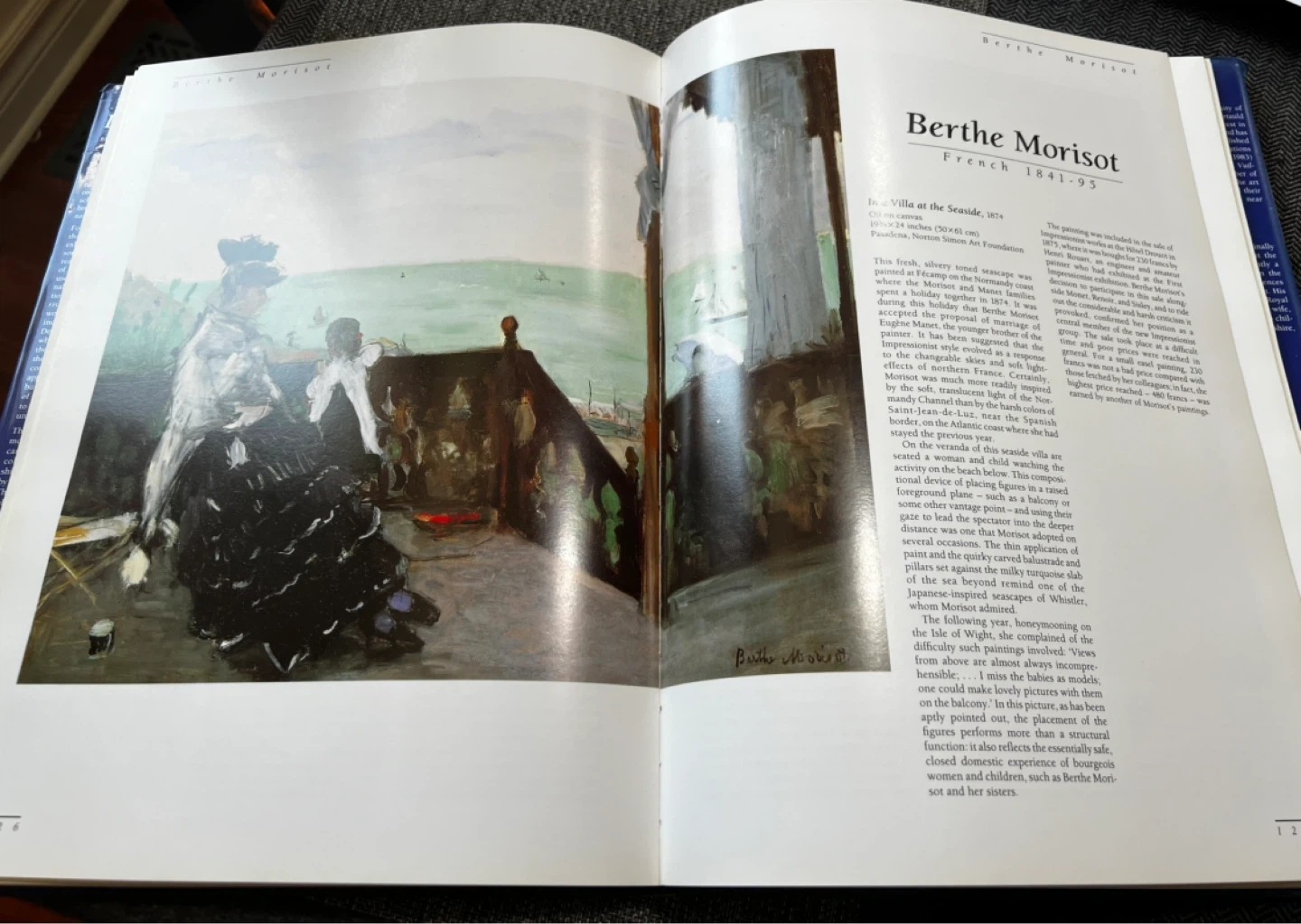 A comprehensive book on Impressionism by Belinda Thomson and Michael Howard. Features works by artists like Monet and Berthe Morisot. Includes detailed analyses and reproductions of famous paintings. One page has been ripped out, but it is included.