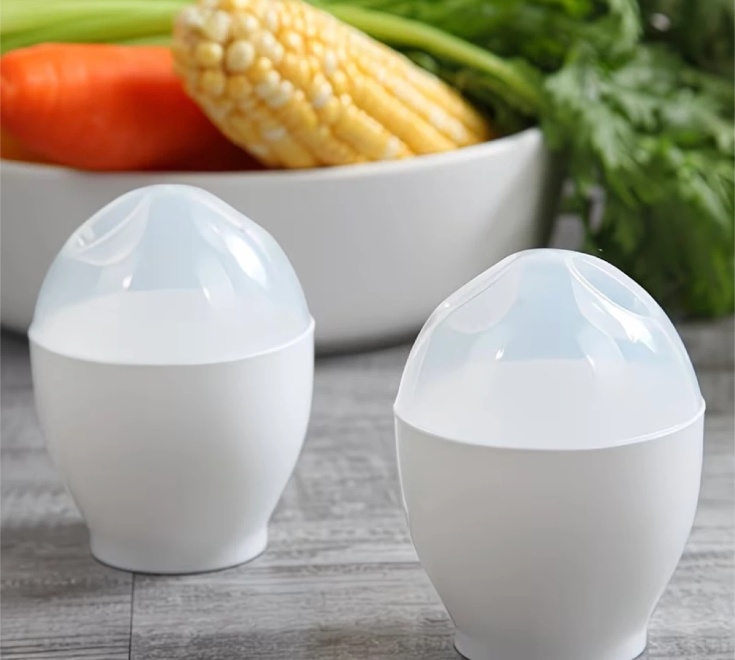 This set includes two white egg cookers with transparent lids. They're designed to make perfect boiled or poached eggs. Made from durable material for long-lasting use. Perfect for Steaming And Boiling Eggs in The Microwave for Tasty Breakfasts And Lunches
