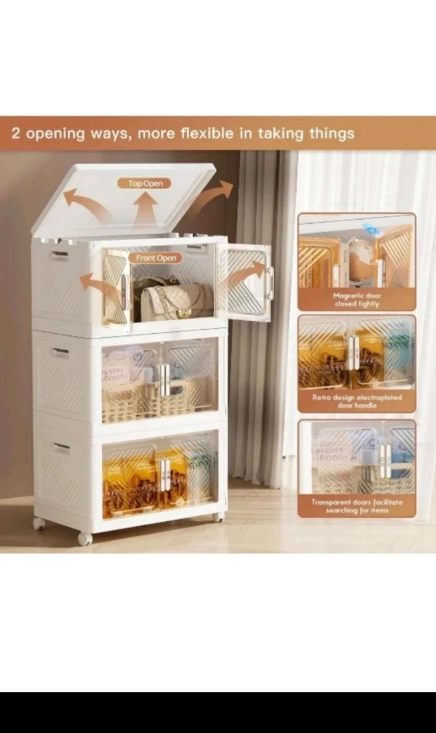 Storage Bins with lid, 76 Qt Foldable Stackable Storage Containers with Wheels, Clear Plastic Collapsible Storage Bins with Door and Lid, Closet Organizers and Storage Box for Home (3 Tier)pick up Edmonton Clareview cash no transfers