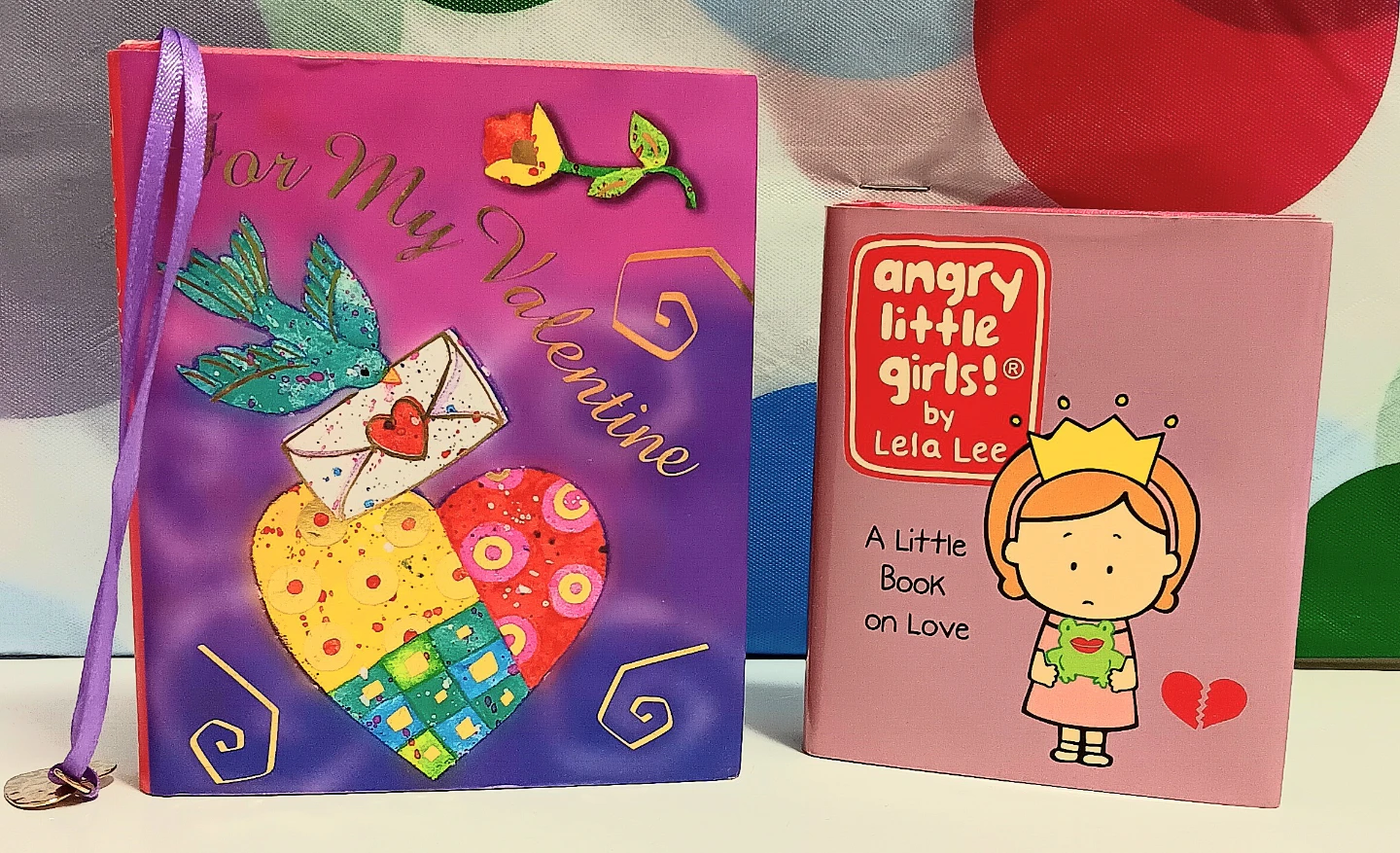 These Valentine's hardcover mini books are up for grabs! One is titled 'For My Valentine' and the other is 'Angry Little Girls'. The books are in excellent condition, ready to be enjoyed by you.