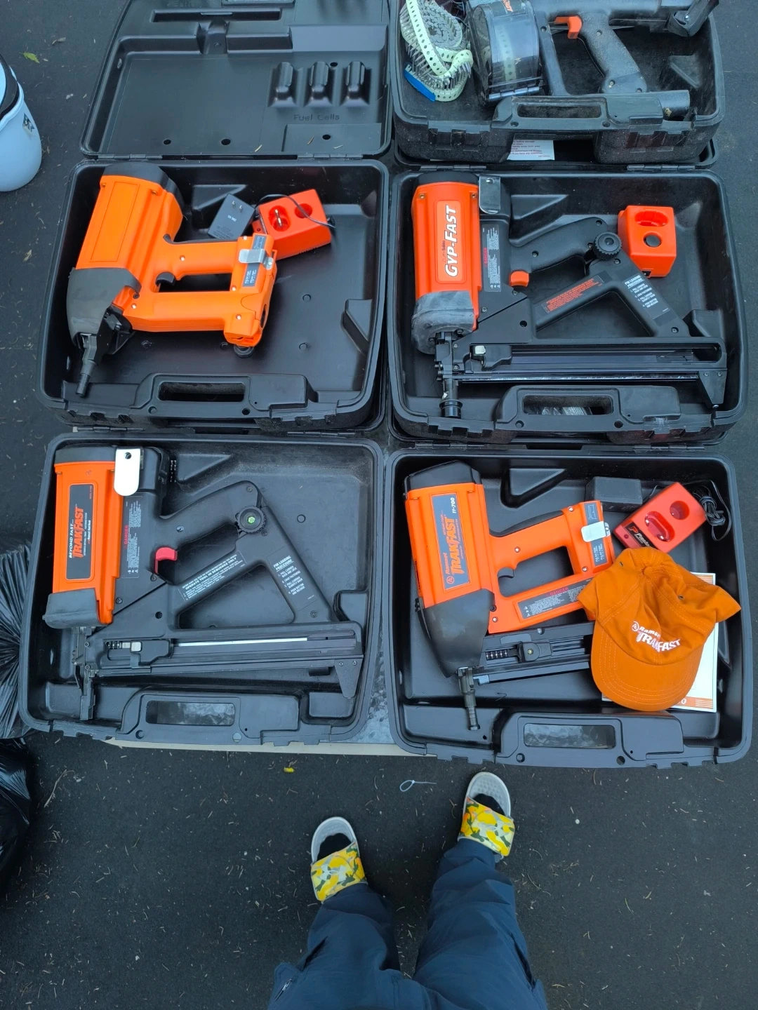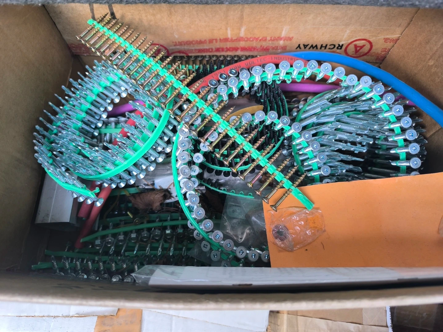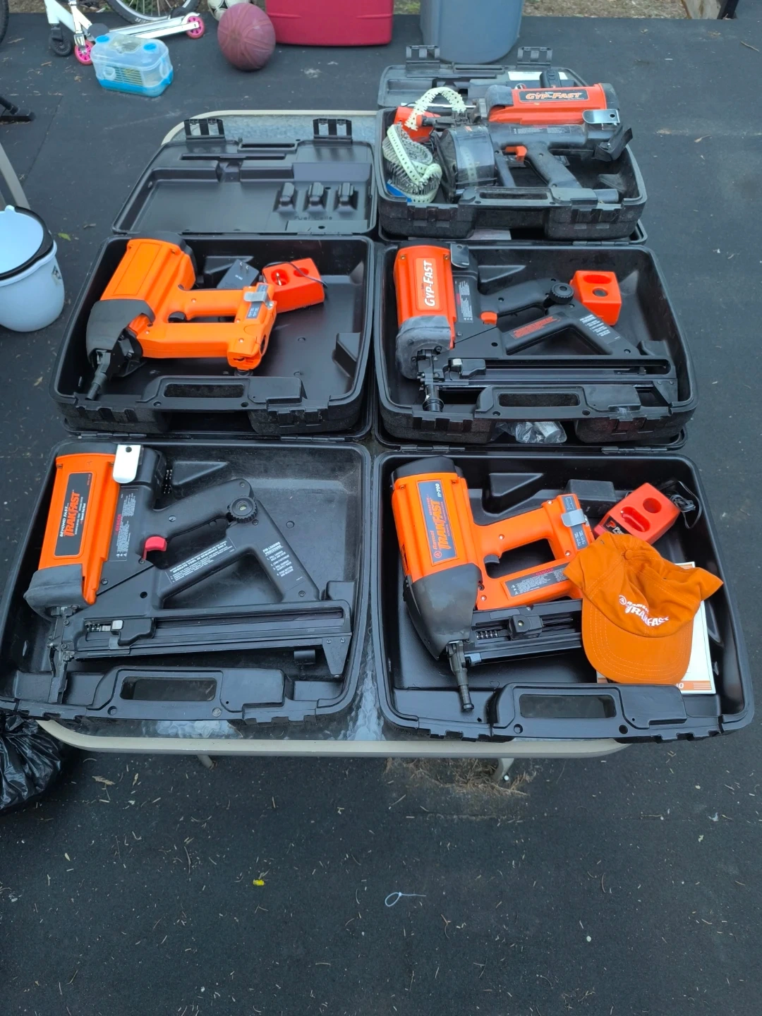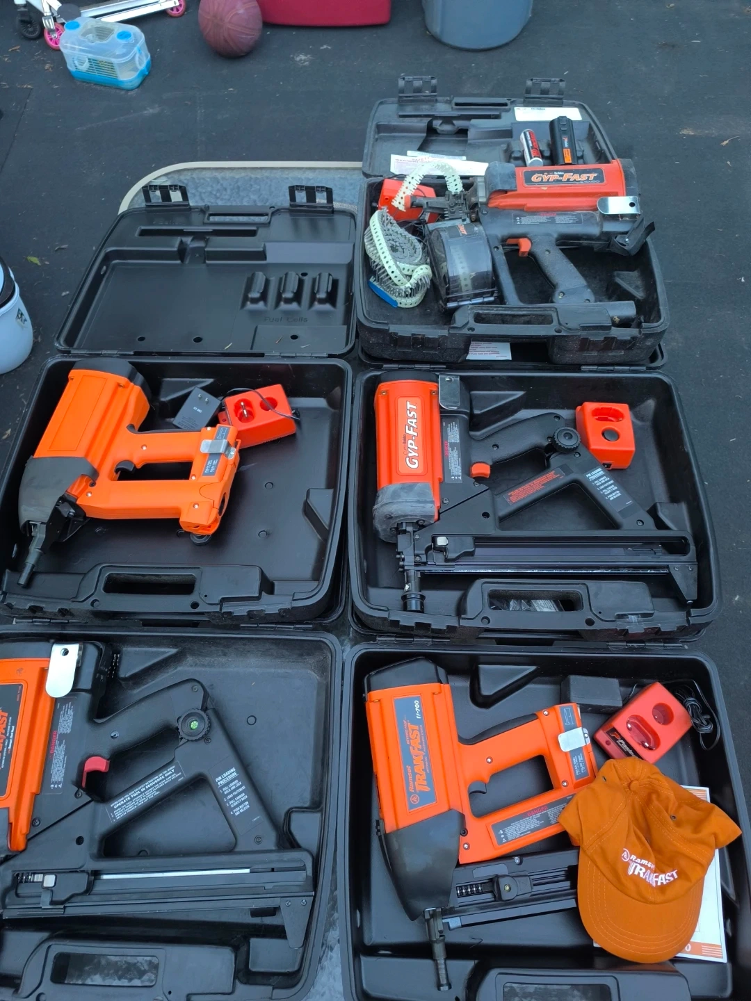 Five Ramset powder actuated fastening tools are included with a large assortment of fasteners. Various boxes of Ramset/Red Head powder fastening systems are also present.