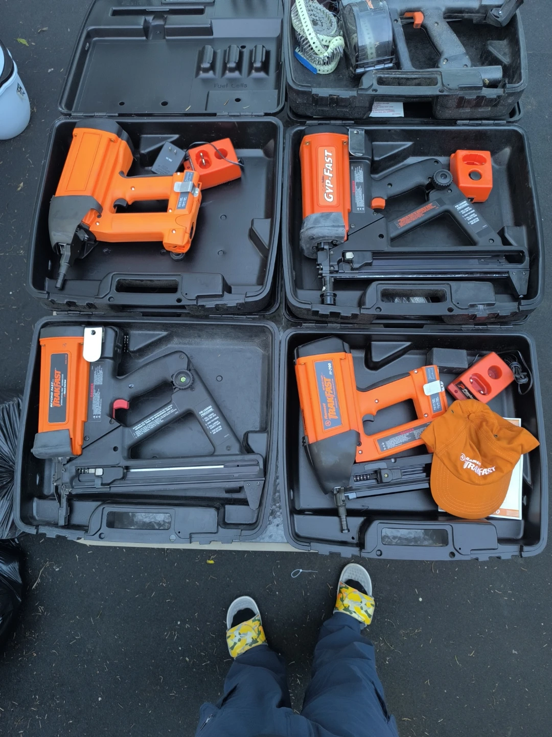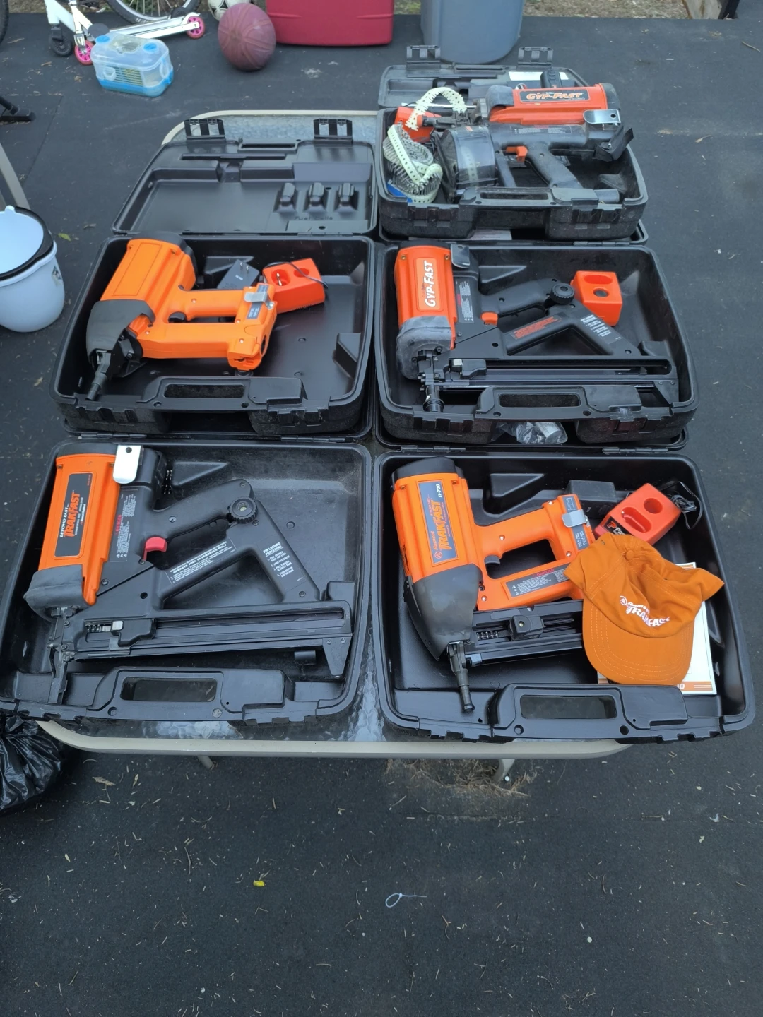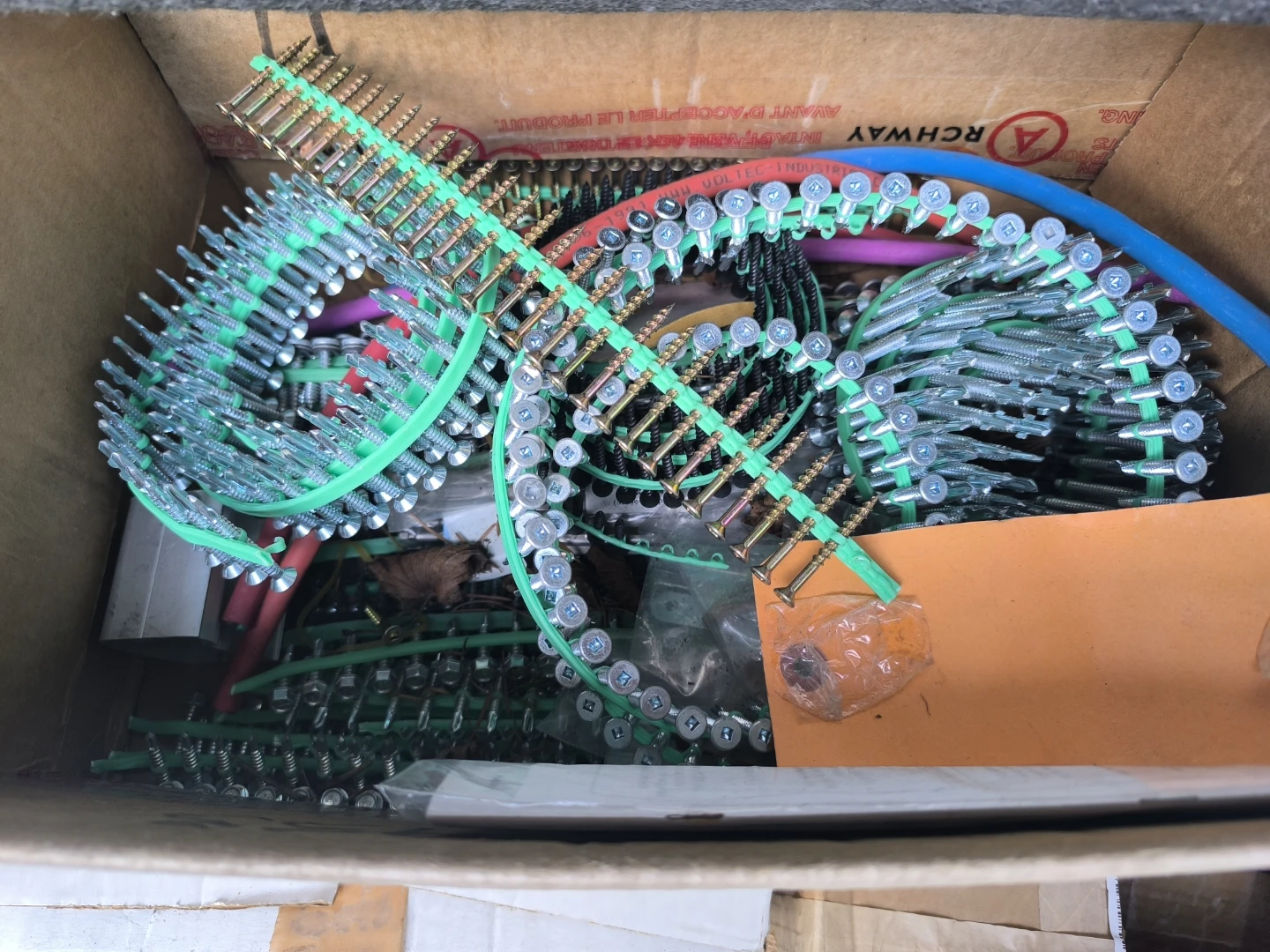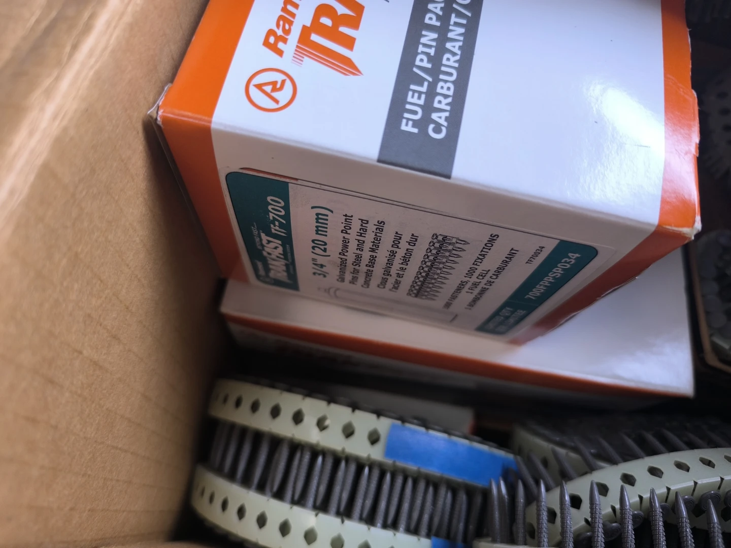 Five Ramset powder actuated fastening tools are included with a large assortment of fasteners. Various boxes of Ramset/Red Head powder fastening systems are also present.