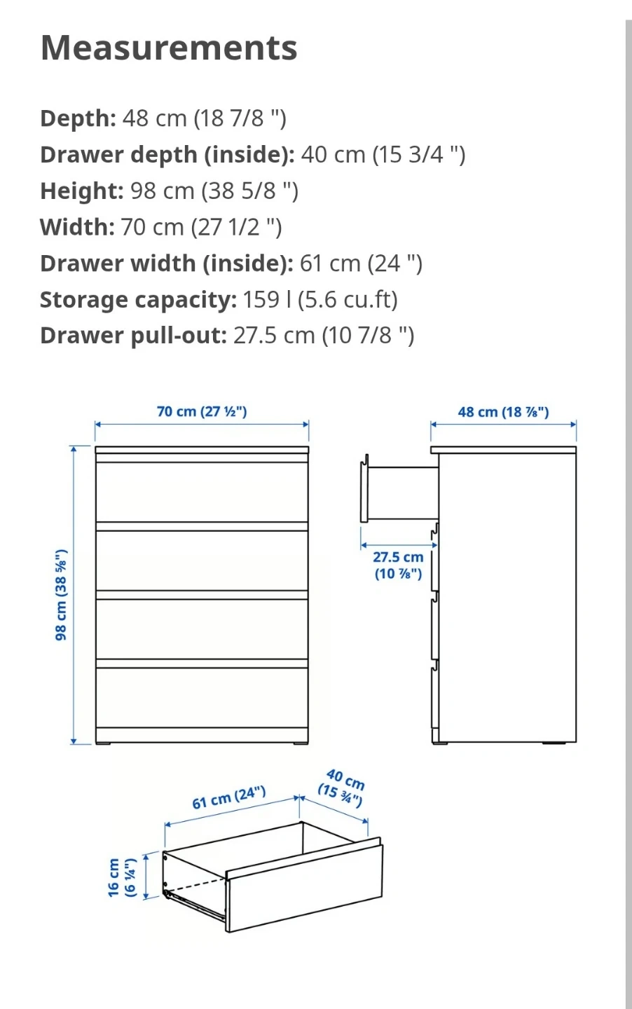 - Dimensions70x48x98cm