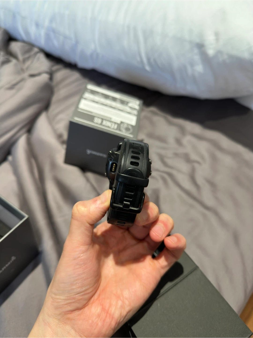 Watch in black. It's a sapphire edition with original packaging and charging cable included.