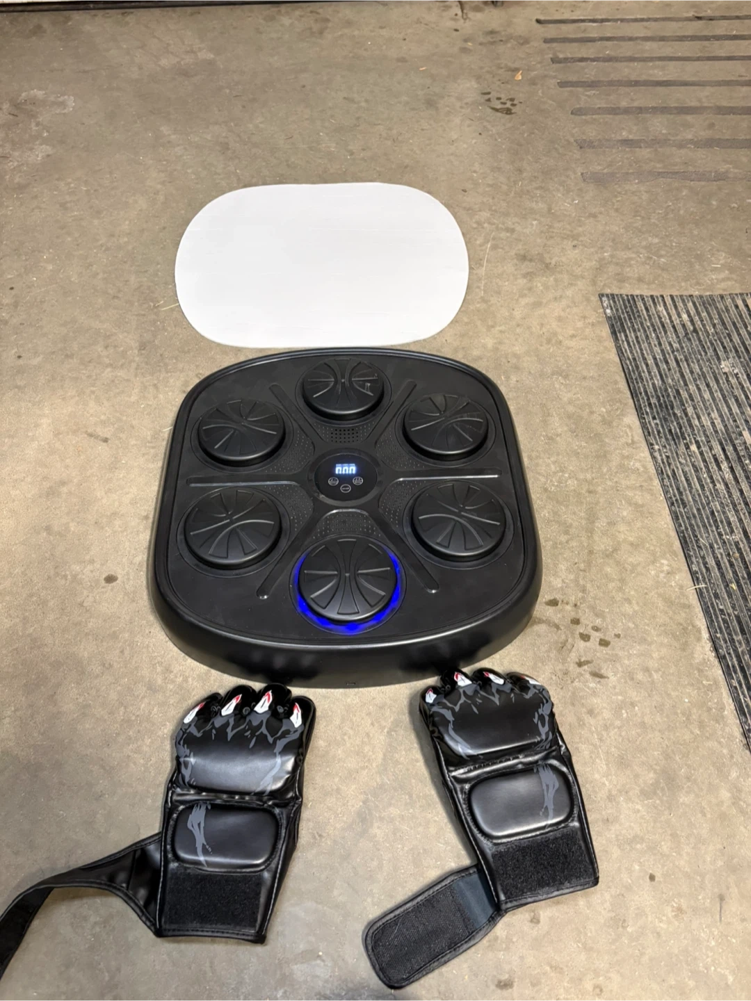 Get your boxing reflexes up to speed with this training set! Includes a reflex ball platform and a pair of boxing gloves to get you started on your training journey also connects to Bluetooth so you can listen to your own music instead of the default music.