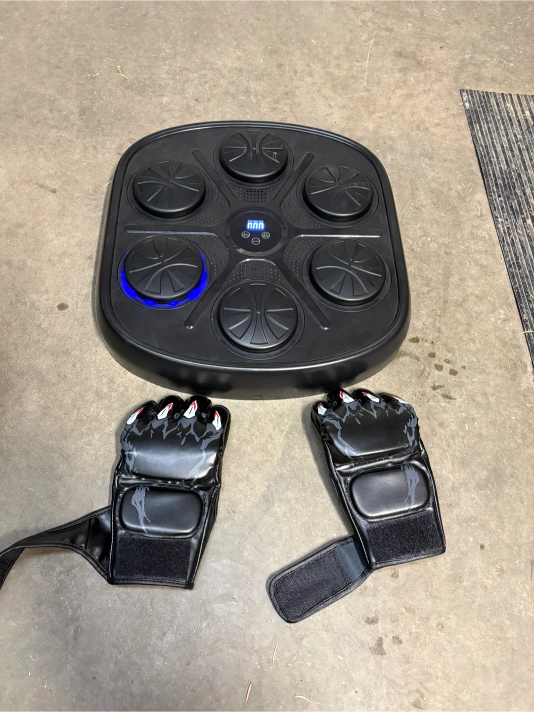 Get your boxing reflexes up to speed with this training set! Includes a reflex ball platform and a pair of boxing gloves to get you started on your training journey also connects to Bluetooth so you can listen to your own music instead of the default music.