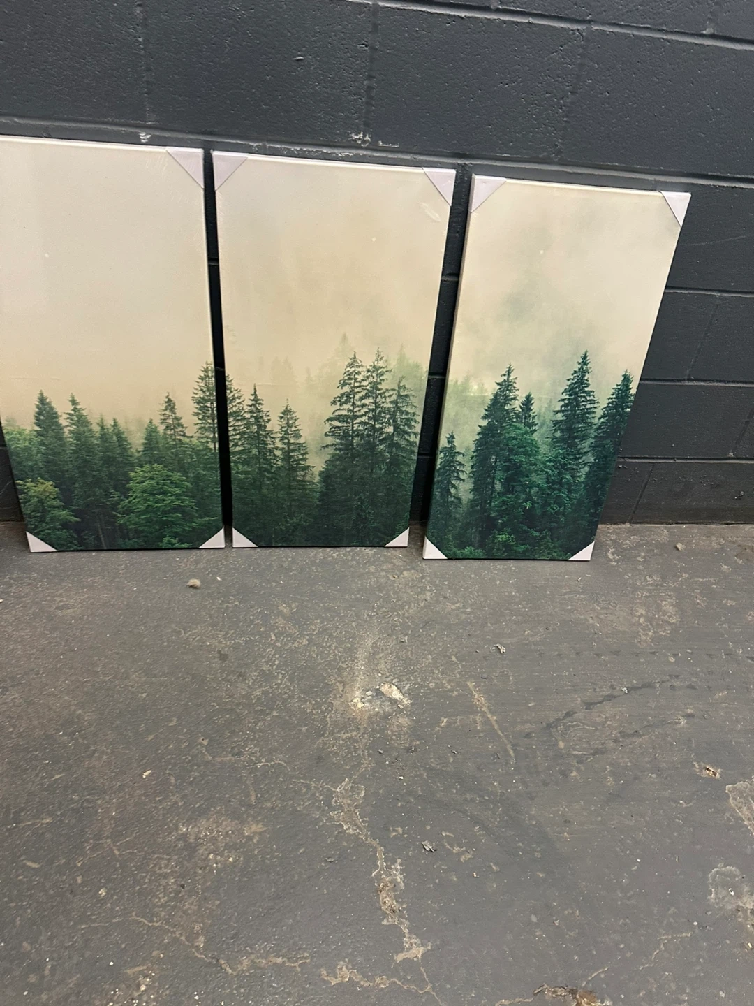 Set includes three canvas prints of a misty forest scene and one large canvas print of a city skyline at night. Ready to hang wall decor for your living space. Adds a touch of nature and urban ambiance to any room!