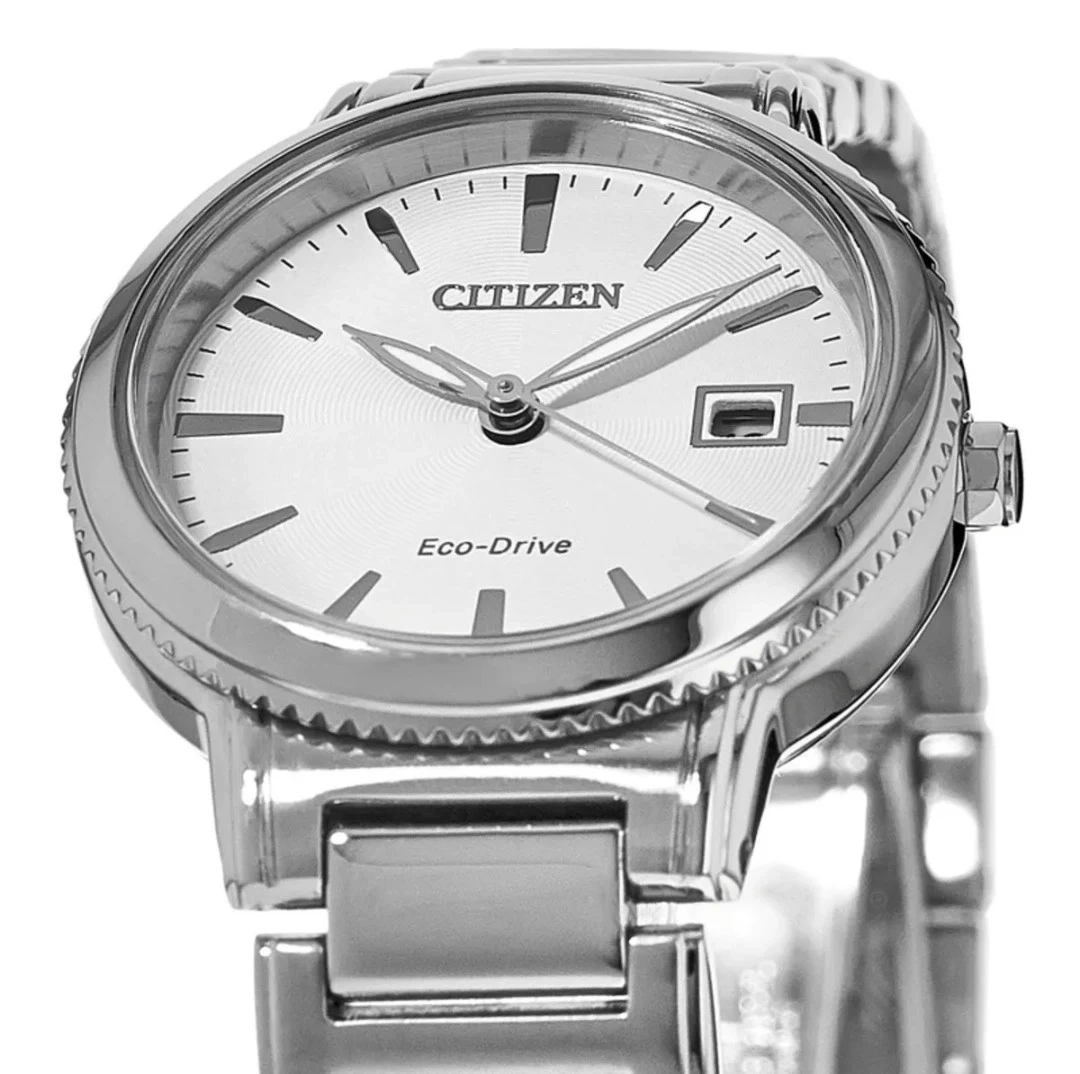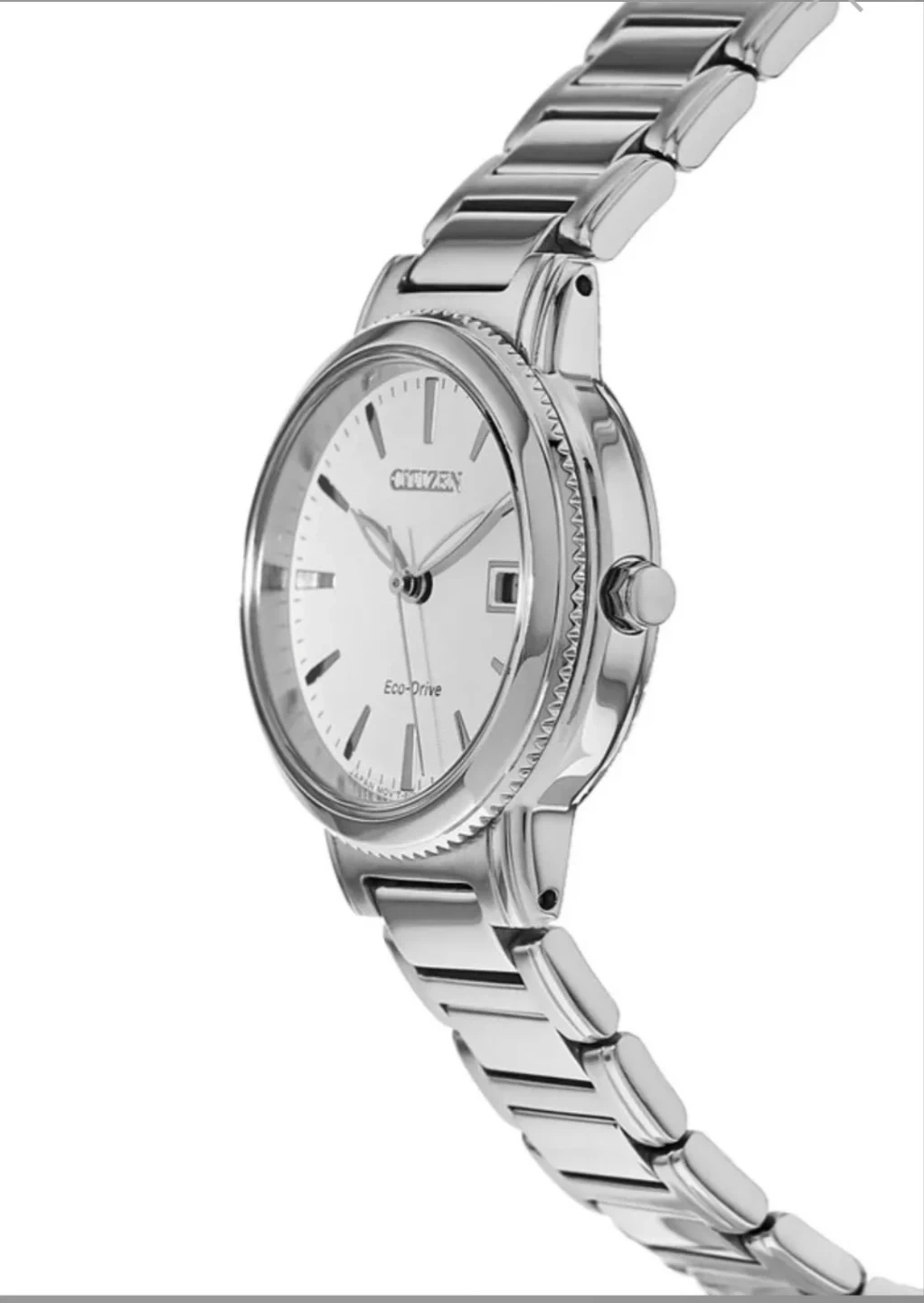Citizen Chandler stainless steel women's watch with Eco-Drive technology. Features a clean white dial and a date display. It's a reliable and stylish timepiece.
