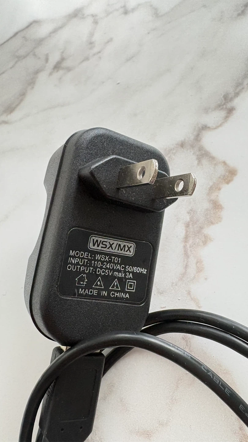 This is a WSX/MX charger with model WSX-T01. It's a black USB charger. Input is 110-240VAC 50/60Hz, and output is DC5V max 3A. It's great for charging your devices!