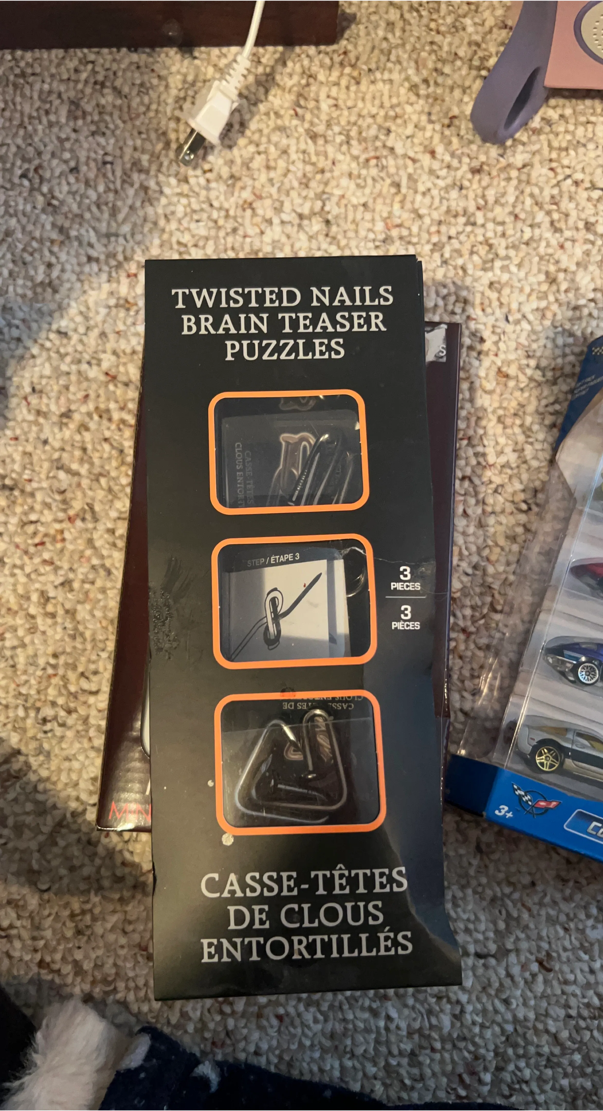 This set includes three brain teaser puzzles. Comes with 3 separate instructions to help put them together and take them apart.