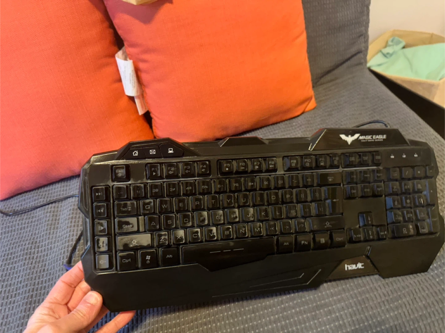 Buy & SellHavit HV-KB555CM Gaming KeyboardHavit HV-KB555CM Gaming Keyboard$16This is a Havit Magic Eagle gaming keyboard. It connects via USB. The model number is HV-KB555CM. Great condition disinfectedConditionLike newBrandHavitWHERE TO MEETCheck LocationView MapSELLERverifiedGlennWalden851 review1 chats·0 favorites·22 viewsSEND CHAT TO SELLERHi Glenn! I’m interested in your listing.Hi Glenn! I’m interested in your listing.Get the Karrot app to chatSign In to chat
