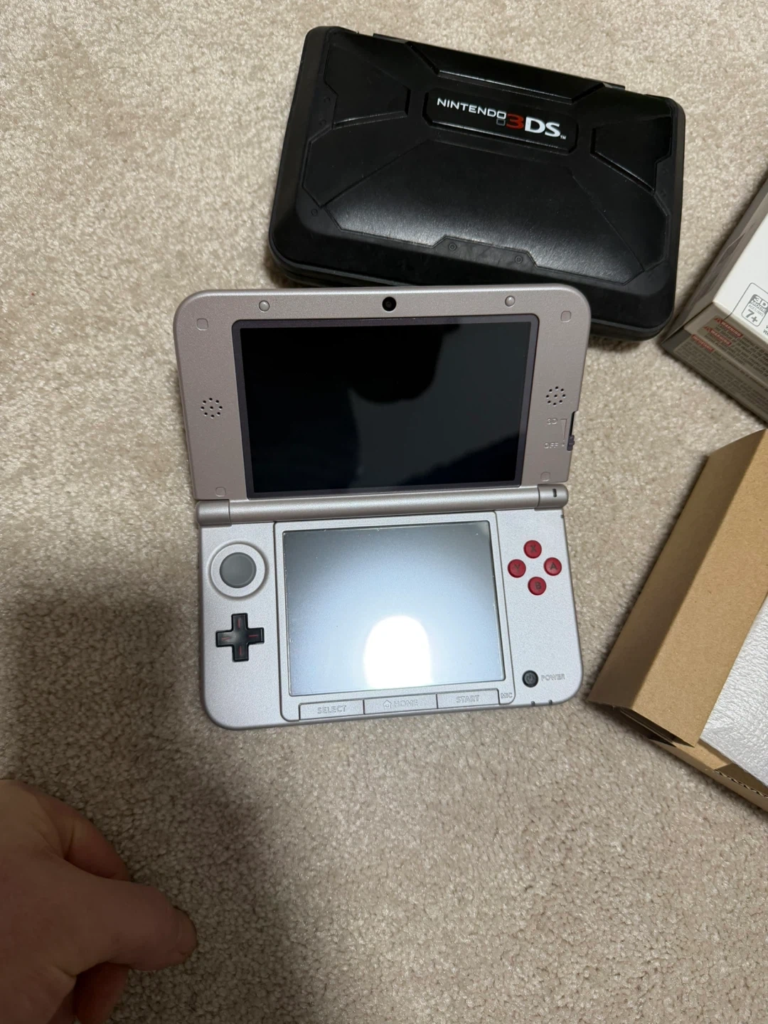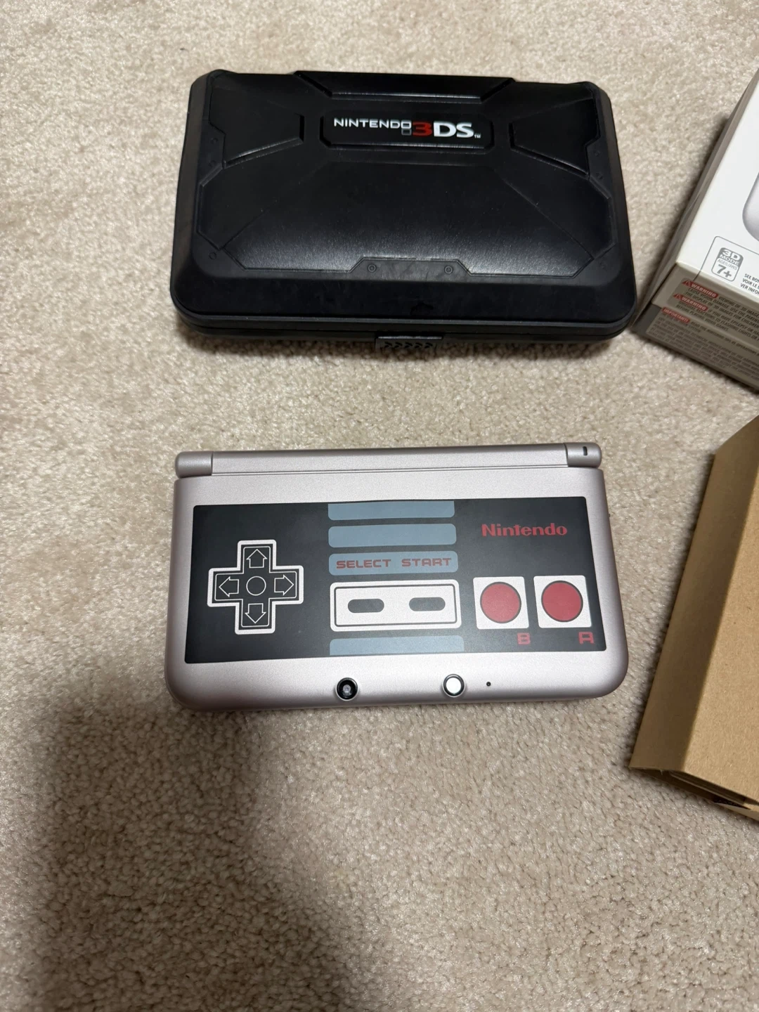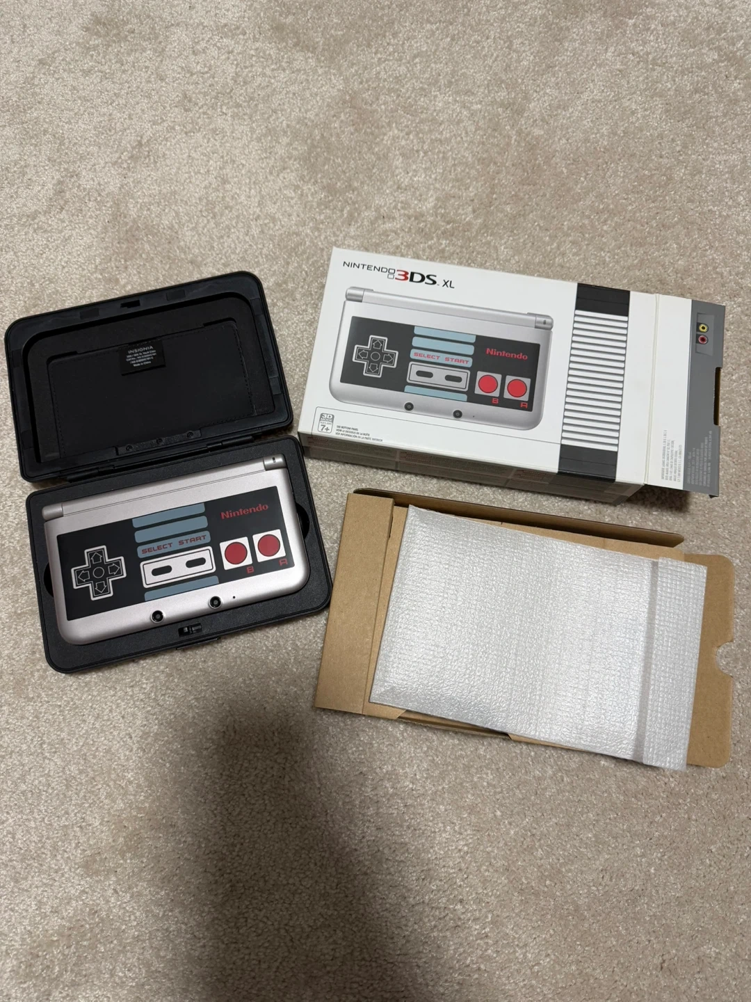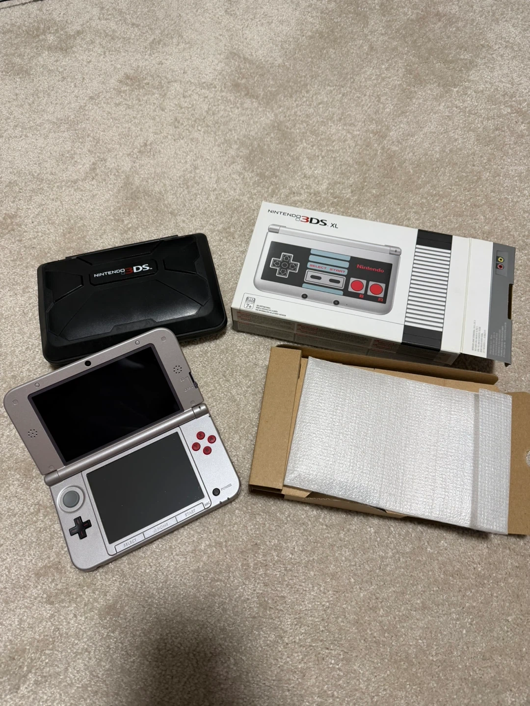 This is a Nintendo 3DS XL console in the limited edition NES design. It comes with its original box and a protective carrying case. It's a great piece for any Nintendo collector! (Not a single scratch screen protectors on both screens)