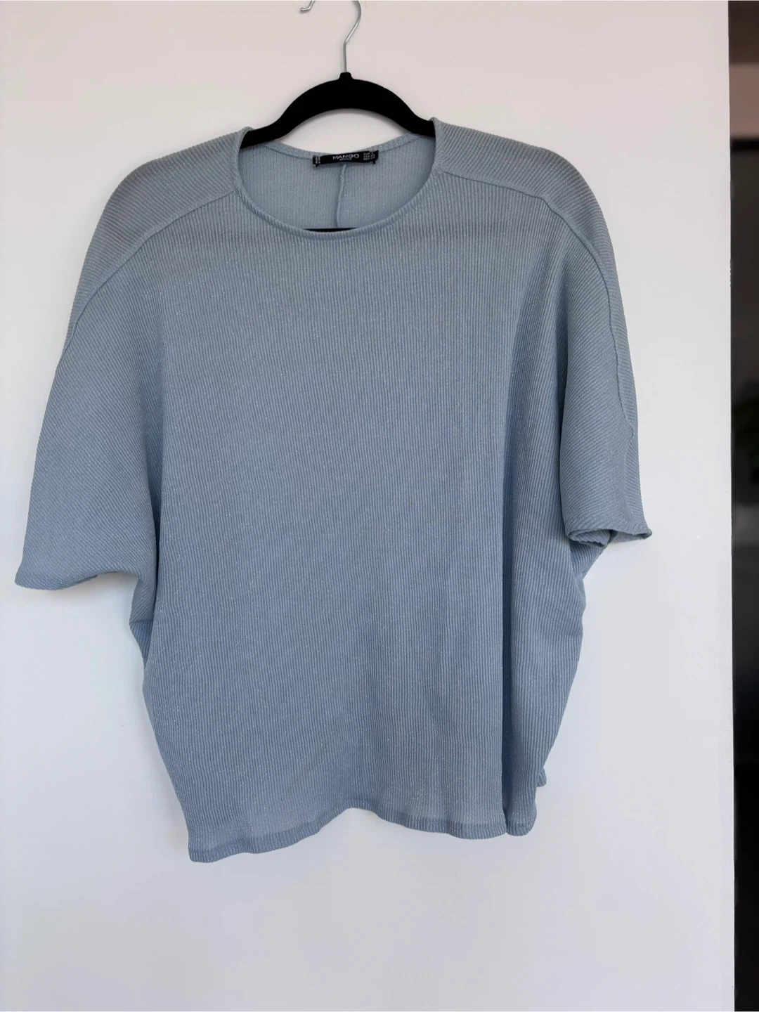 This is a blue sparkly ribbed top from Mango Basics.