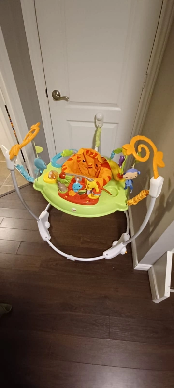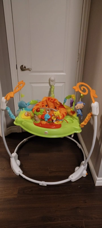 Baby jumperoo. Features colourful design. Multiple toys and activities. Great for encouraging development.