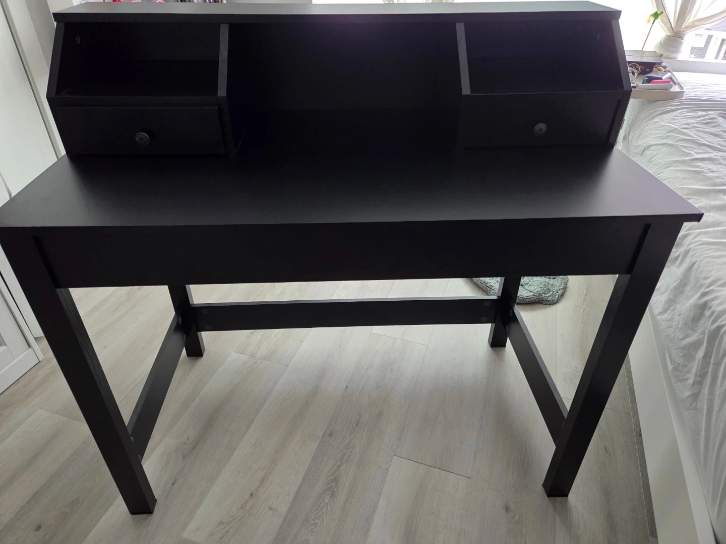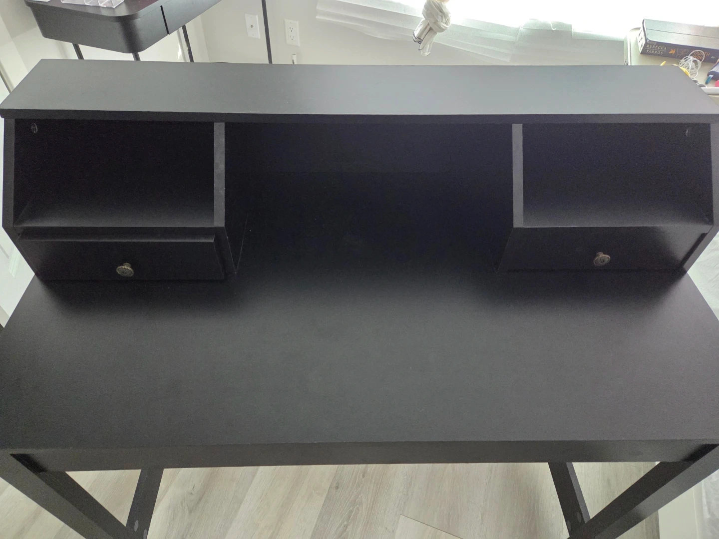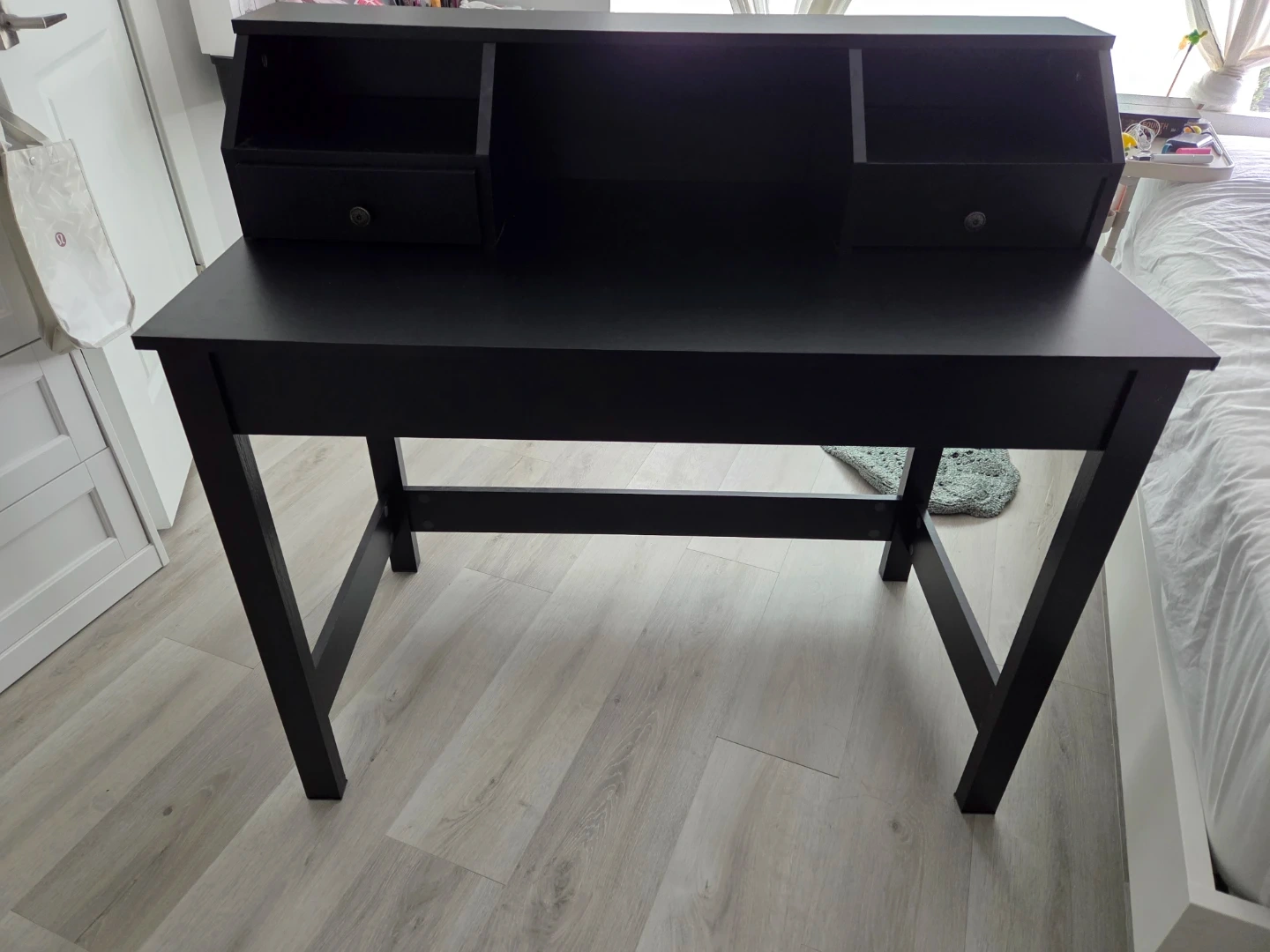 Buy & SellBlack Writing Desk with HutchBlack Writing Desk with Hutch$48A practical black writing desk with a built-in hutch. It features two small drawers for storage. Made of engineered wood.ConditionOkayWHERE TO MEETCheck LocationView MapSELLERverifiedrunnerWilloughby600 reviews1 chats·0 favorites·17 viewsSEND CHAT TO SELLERHi runner! I’m interested in your listing.Hi runner! I’m interested in your listing.Get the Karrot app to chatSign In to chat