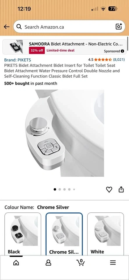 Selling a brand new PIKETS Bidet Attachment in Chrome Silver. This unit has never been used and is still in its original condition. It’s a non-electric, ultra-slim design that fits easily under your existing toilet seat.