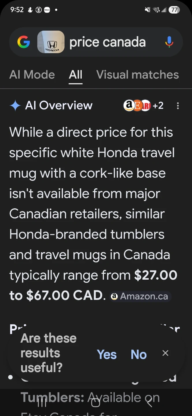 Buy & SellHonda Travel Mug Brand NewHonda Travel Mug Brand New$20White Honda travel mug with a cork base. BPA-free. Brand new! See pic 2 next to pop can for size. ConditionNewWHERE TO MEETMy houseView MapSELLERJanQueensborough39437 reviews0 chats·1 favorites·4 viewsSEND CHAT TO SELLERHi Jan! I’m interested in your listing.Hi Jan! I’m interested in your listing.Get the Karrot app to chatSign In to chat