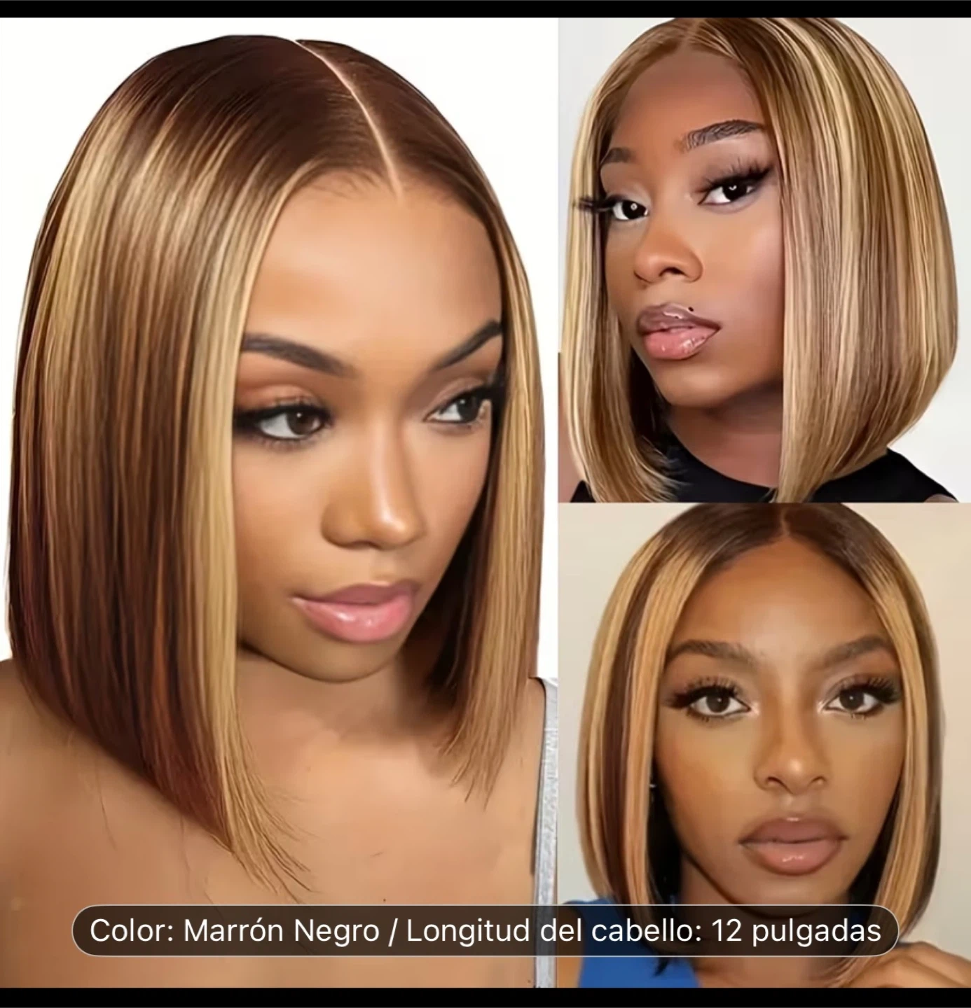 12 Inch Bob Wig - Brown/Black with Blonde Highlights