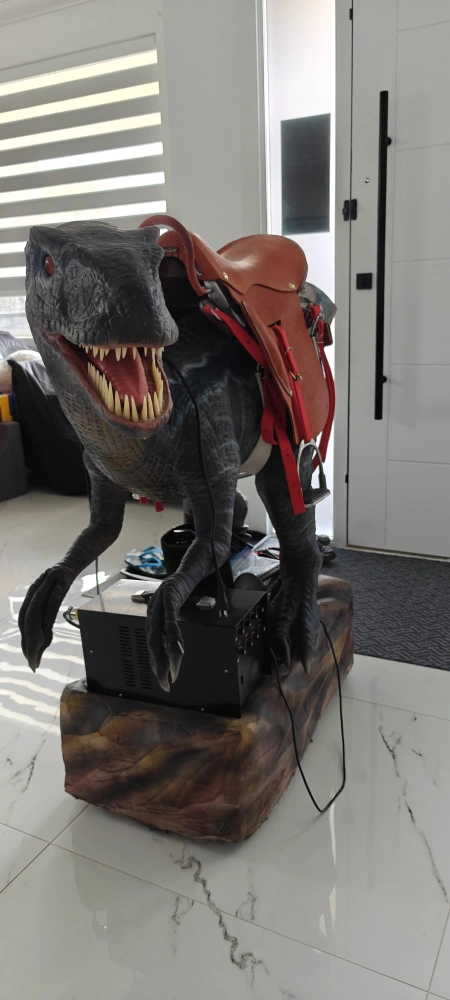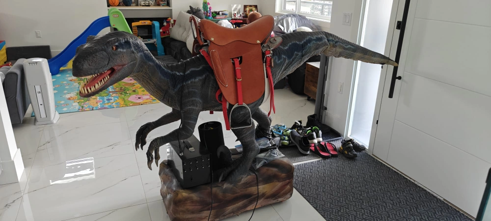 Selling a dinosaur ride with a saddle! This unique piece is sure to be a hit. It features a realistic dinosaur figure with a saddle, perfect for imaginative play or as a quirky decorative item. It's in great shape and ready for a new home!