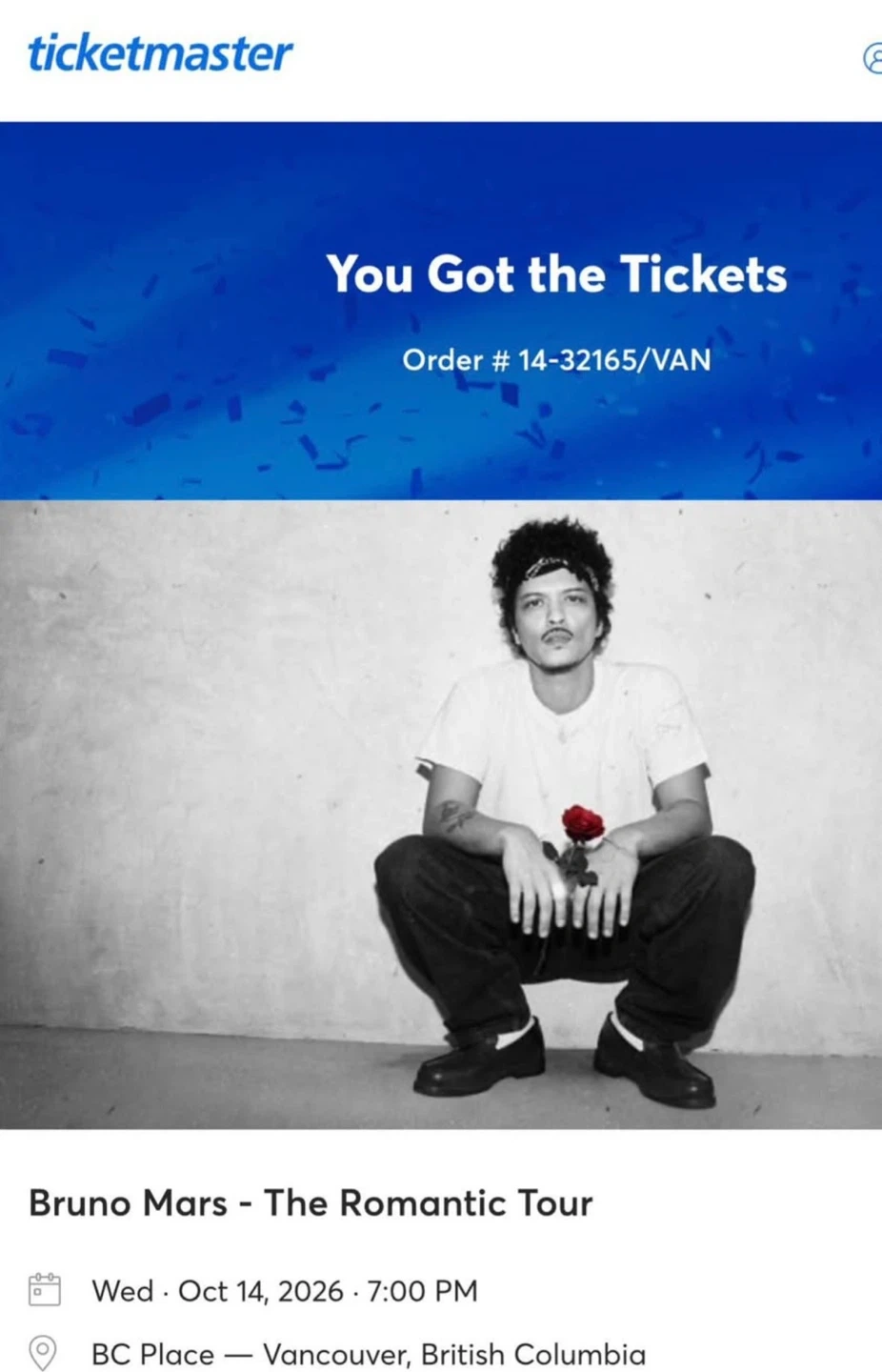 Bruno Mars - The Romantic Tour Ticket - Vancouver