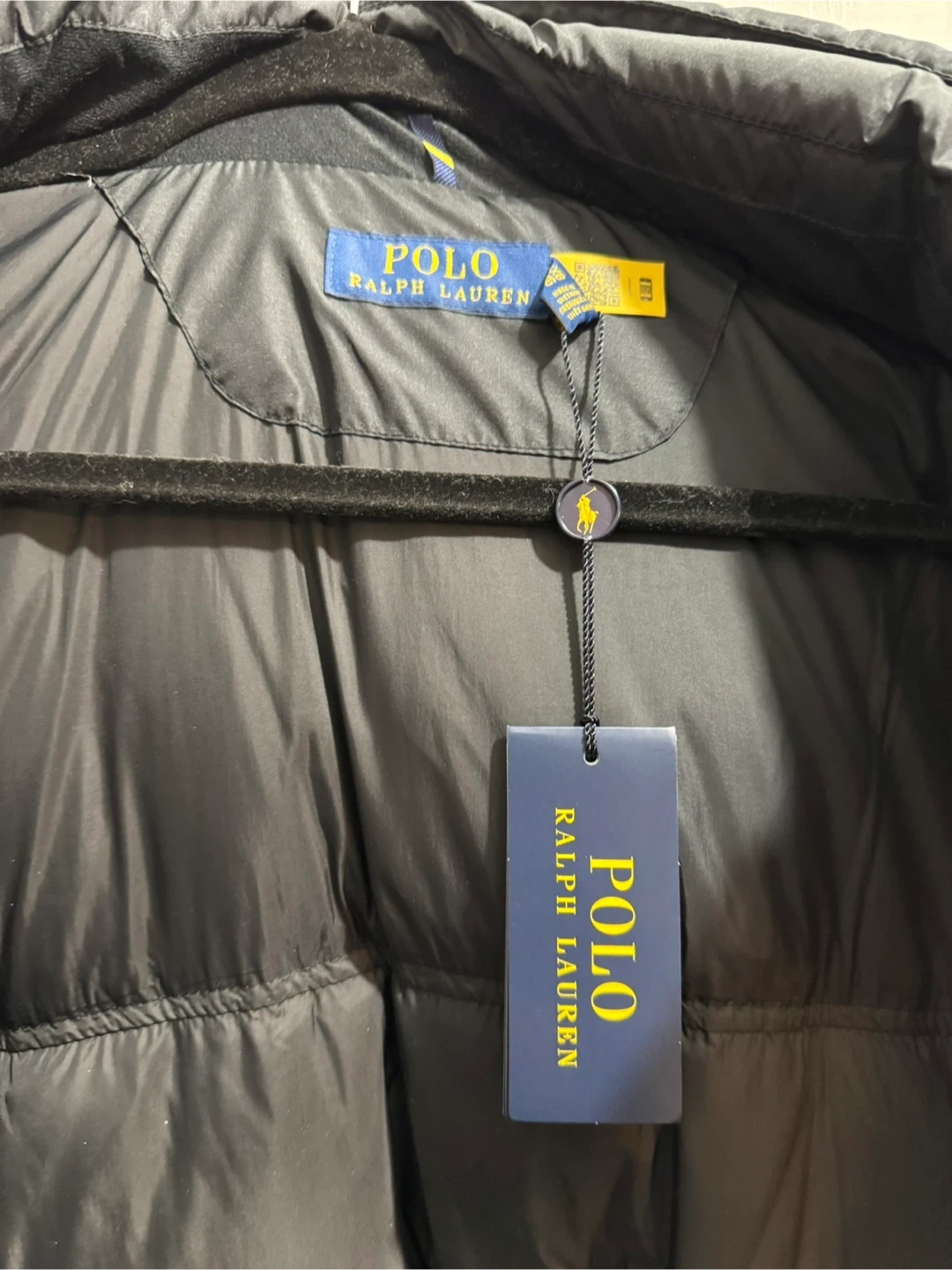 Selling a Polo Ralph Lauren black puffer jacket! It's in great condition and ready to keep you warm. The jacket features a hood and multiple pockets for your convenience. Perfect for the colder months!