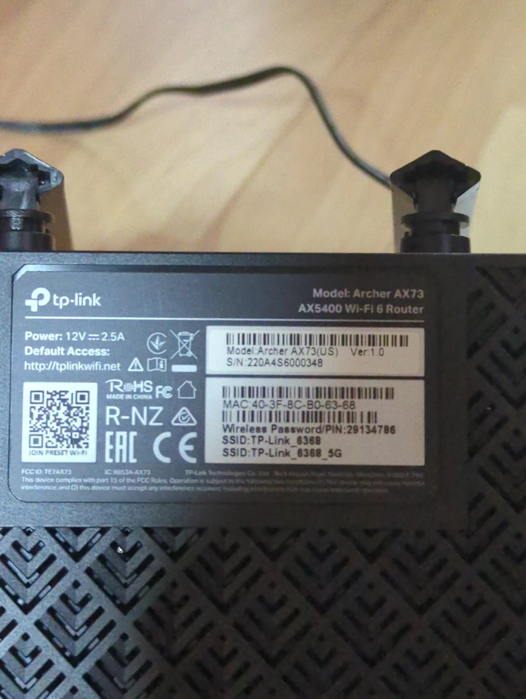 TP-Link Archer AX73 AX5400 Wi-Fi 6 Router. Comes with power adapter. Supports Wi-Fi 6.