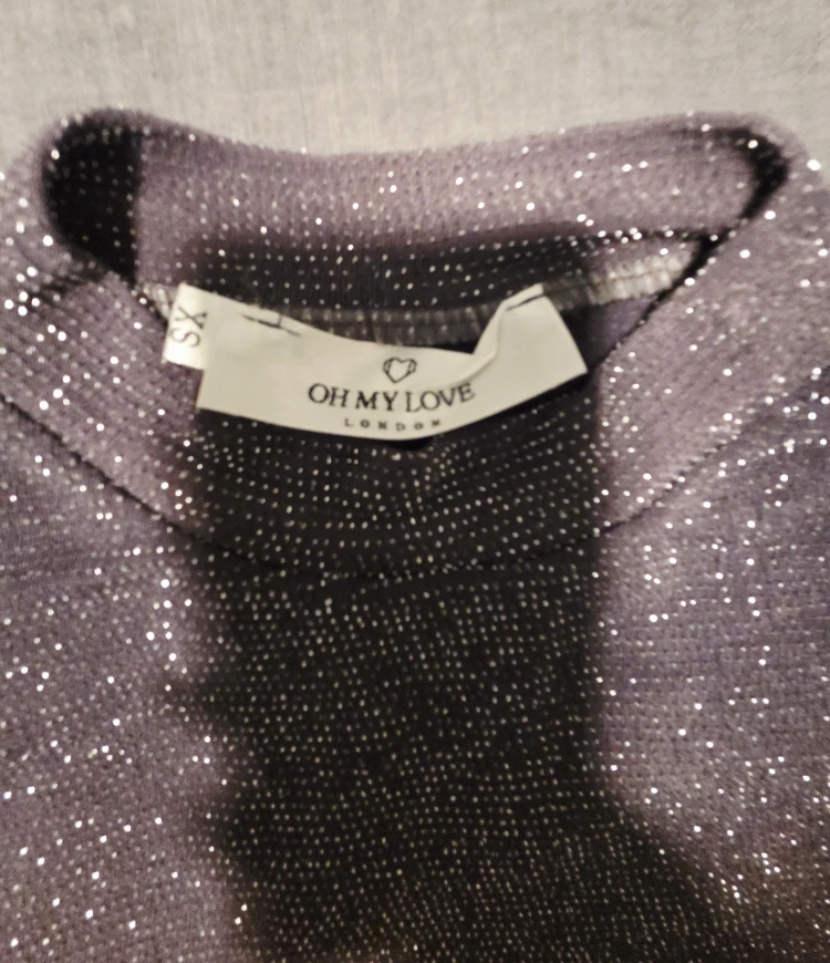 London: Sparkly gray and silver crop top with mock neck, long sleeve - XS