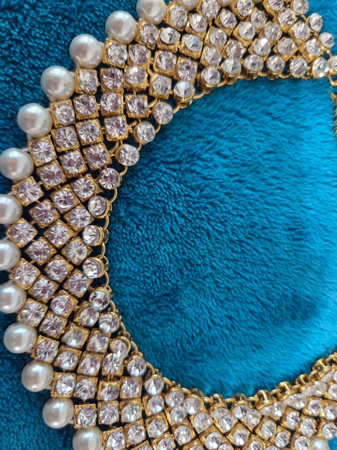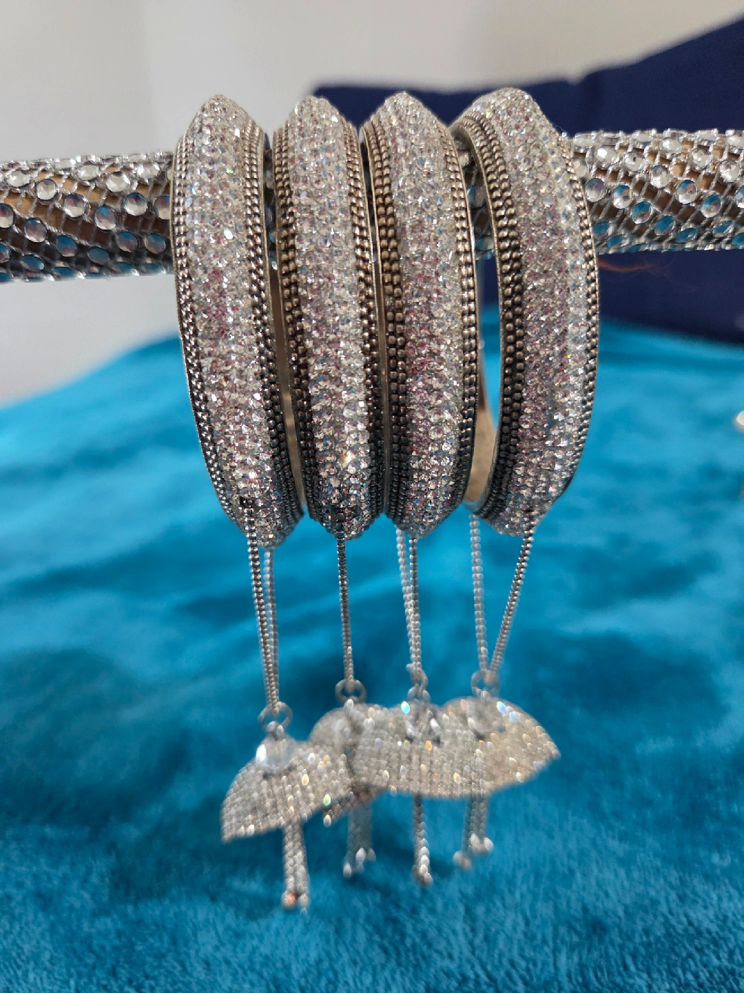 Selling a beautiful jewellery set that includes a necklace, a pair of earrings, and bangles tikka. The set features intricate detailing with stones and pearls, perfect for adding a touch of elegance to any outfit