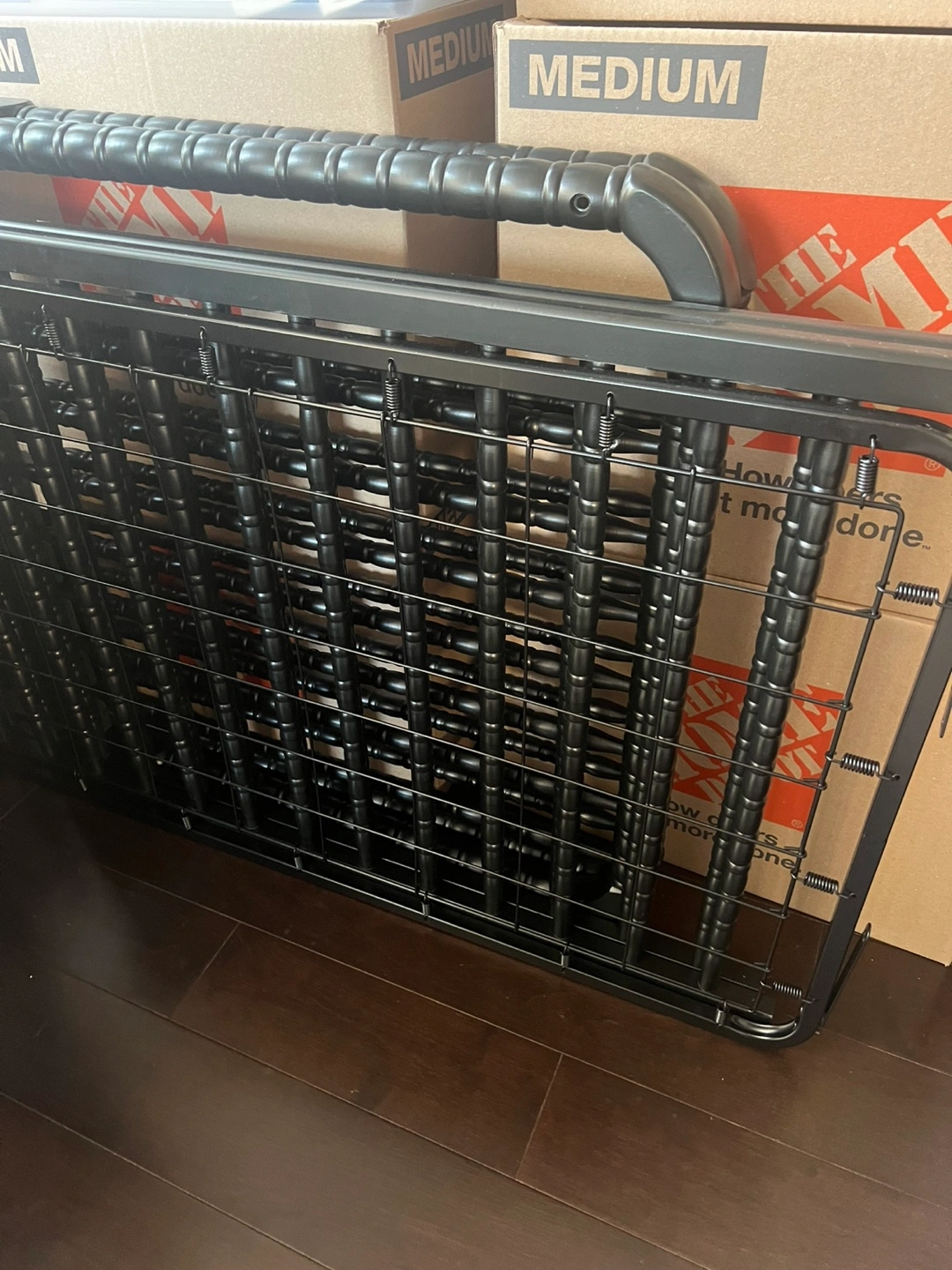 MOVING SALE: Standard sized black crib (not assembled)