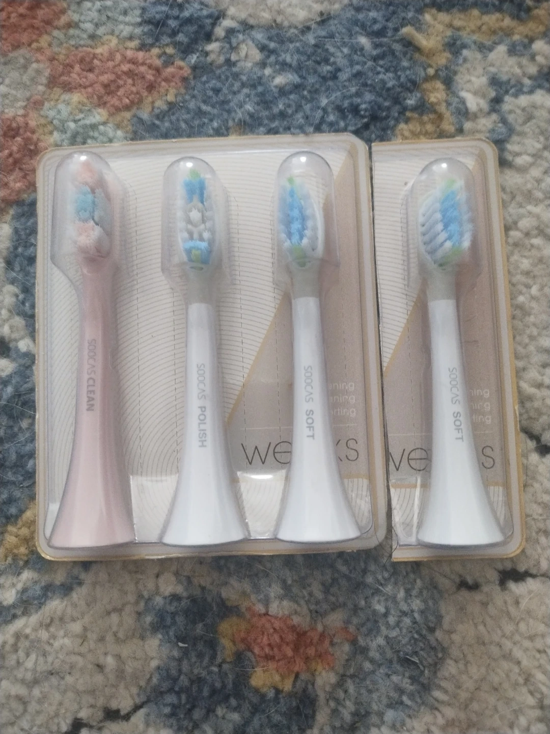 Includes one SOOCAS CLEAN pink head, one SOOCAS POLISH white head, and two SOOCAS SOFT white heads. These are replacement brush heads for electric toothbrushes.