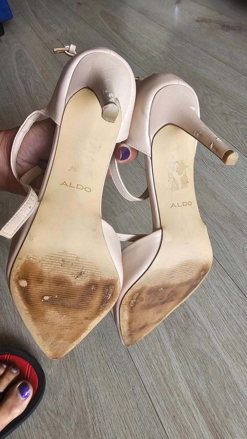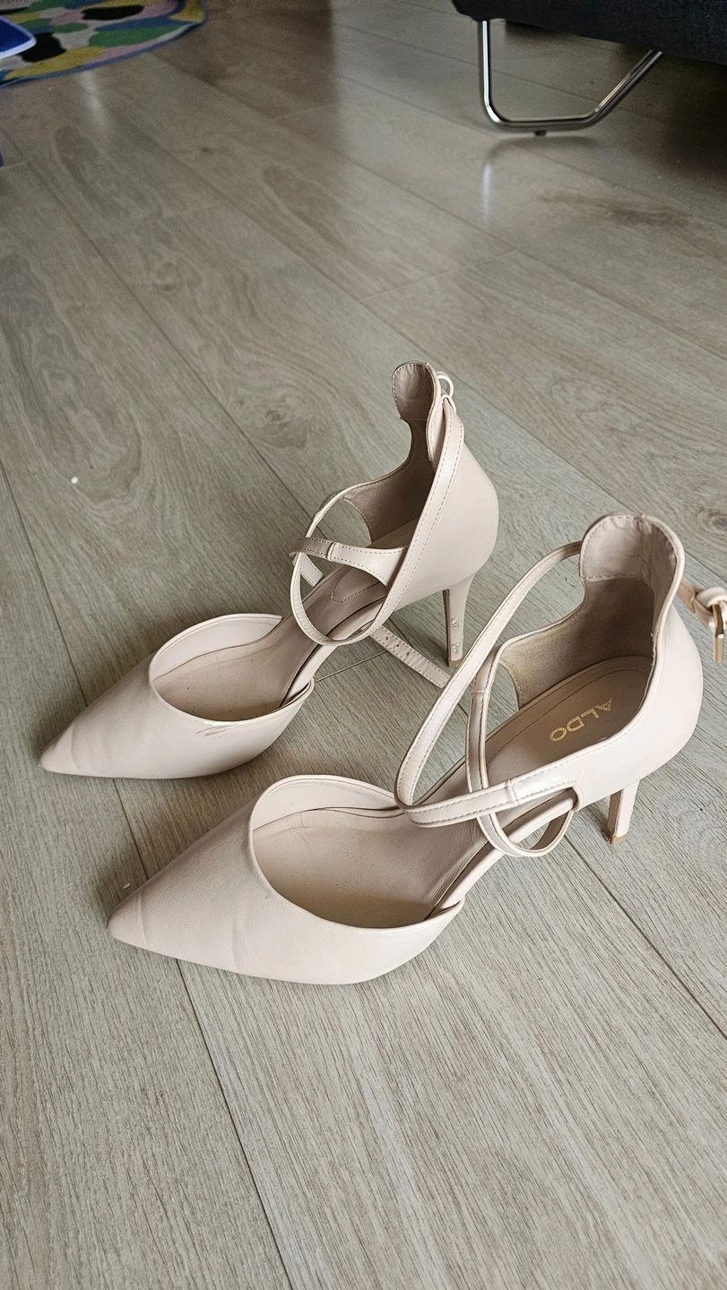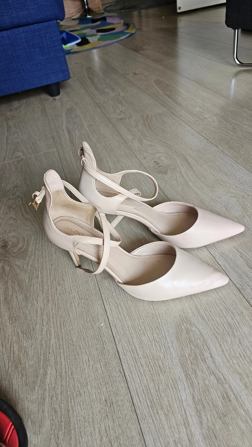 Selling a pair of Aldo heels in a beige colour. They show some signs of wear, especially on the heels and soles as pictured. Still lots of life left!