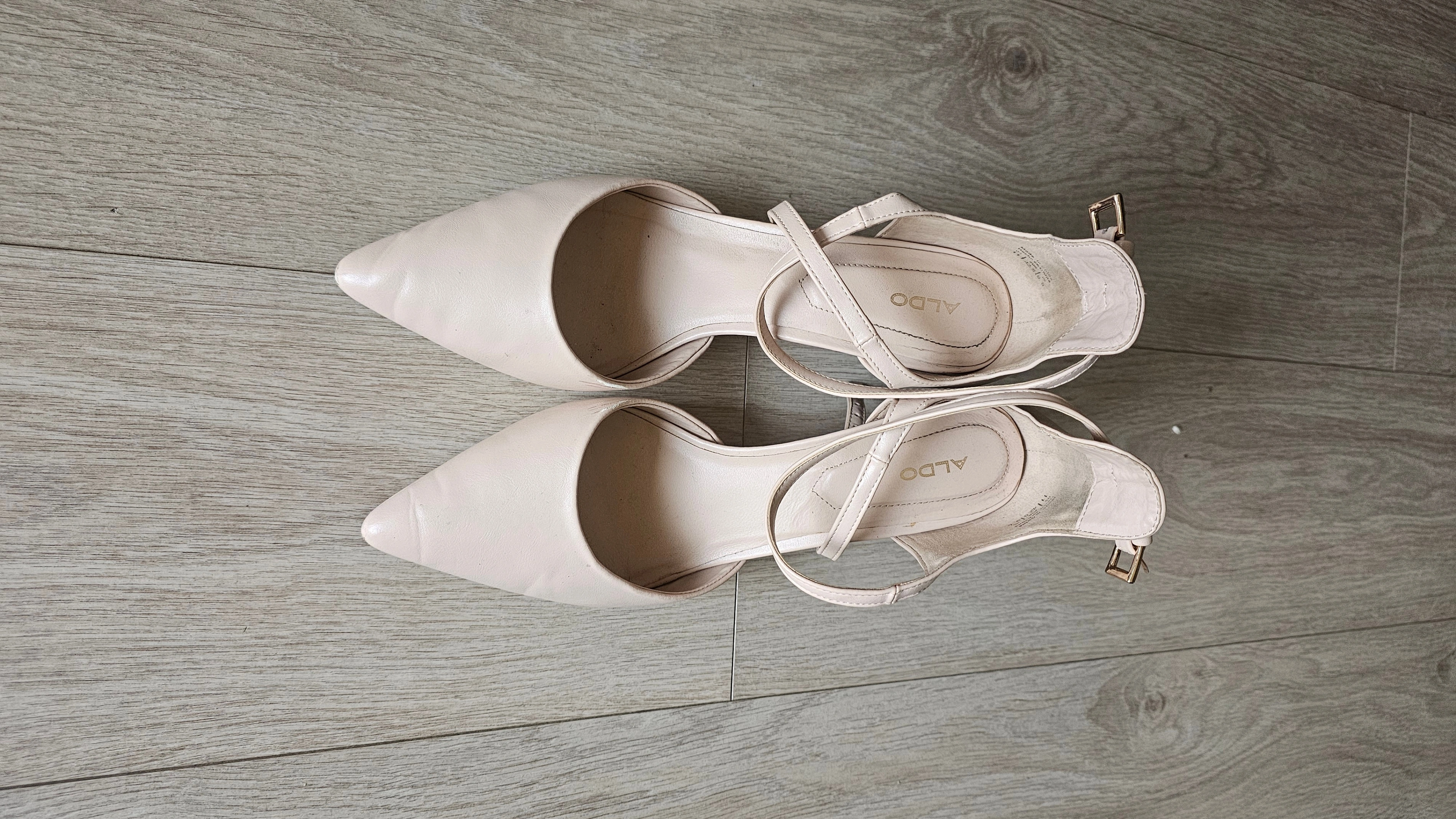 Selling a pair of Aldo heels in a beige colour. They show some signs of wear, especially on the heels and soles as pictured. Still lots of life left!