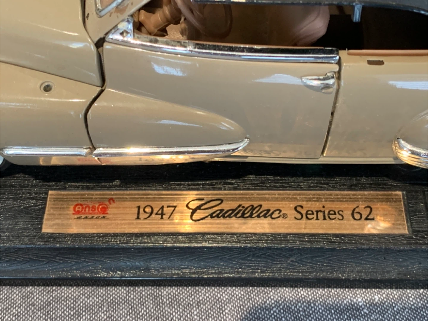 This is an Anson 1:18 scale die-cast model of a 1947 Cadillac Series 62 convertible.