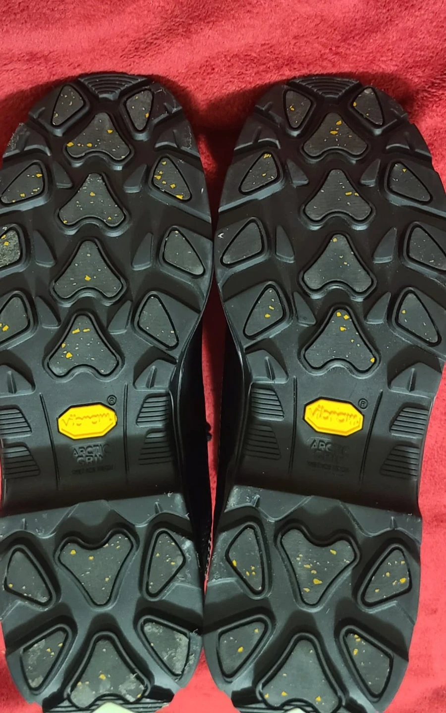 Royer 5707AG steel toe work boots. Reg size 9, M I/75 C/75 EH PR. These boots are made with Vibram Arctic Grip outsoles for enhanced traction. They're designed for safety and durability on the job site.