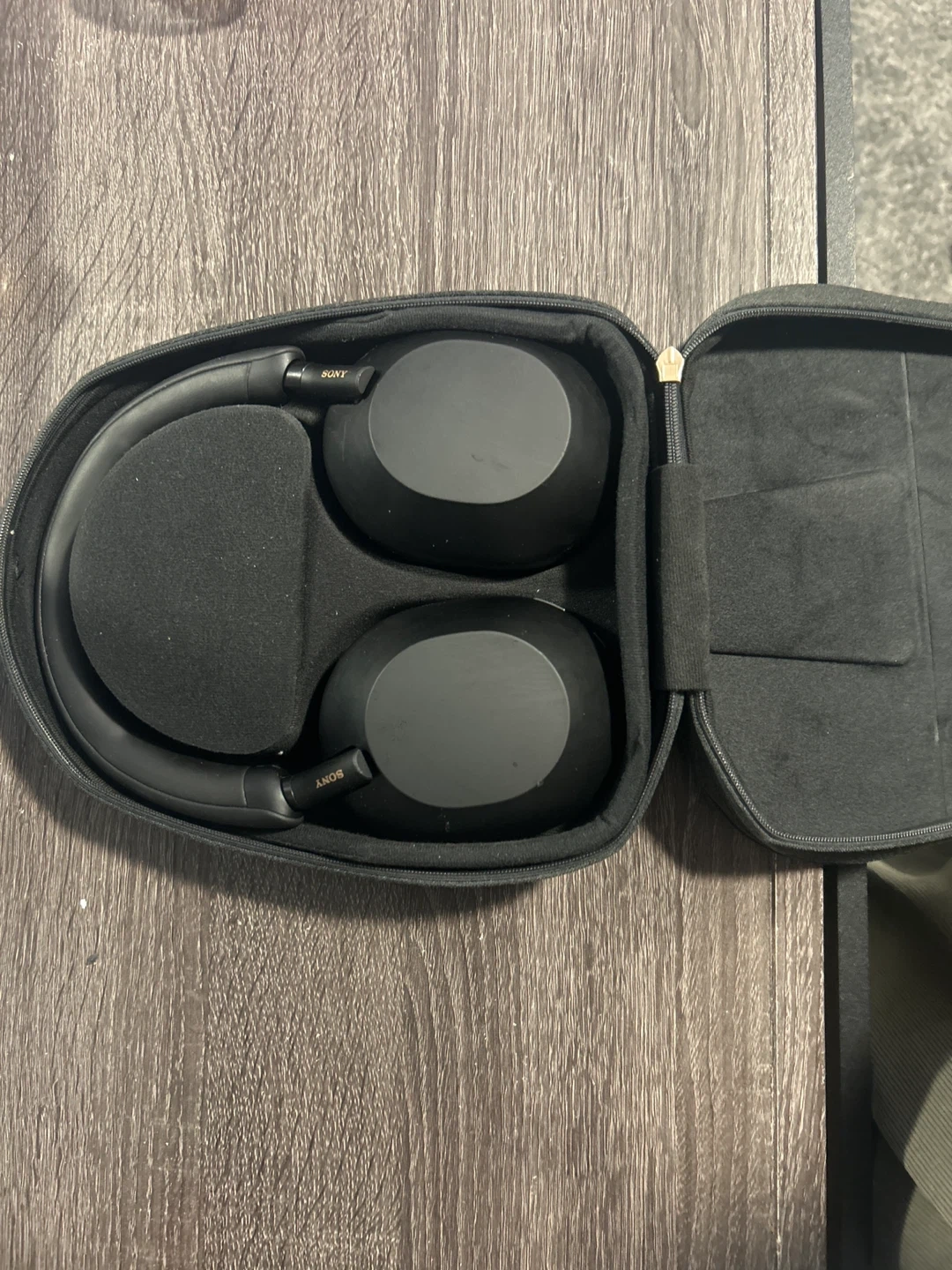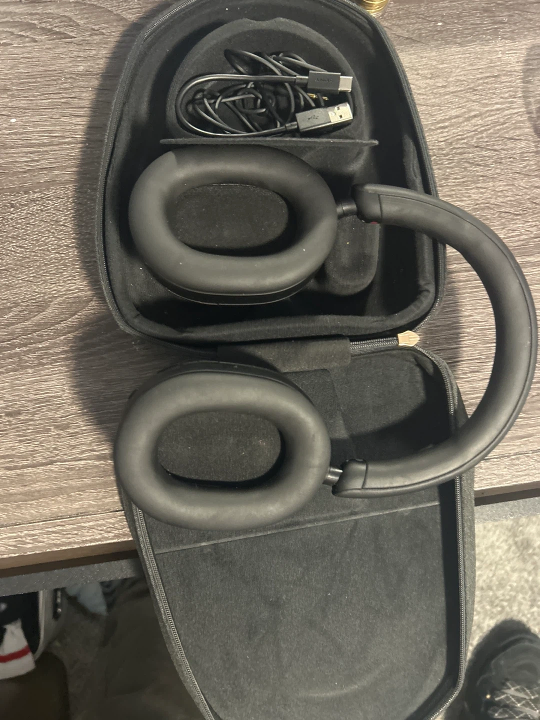 These black Sony WH-1000XM5 headphones offer industry-leading noise cancellation. They come with a protective carrying case and charging cables. Enjoy premium sound quality for calls and music.