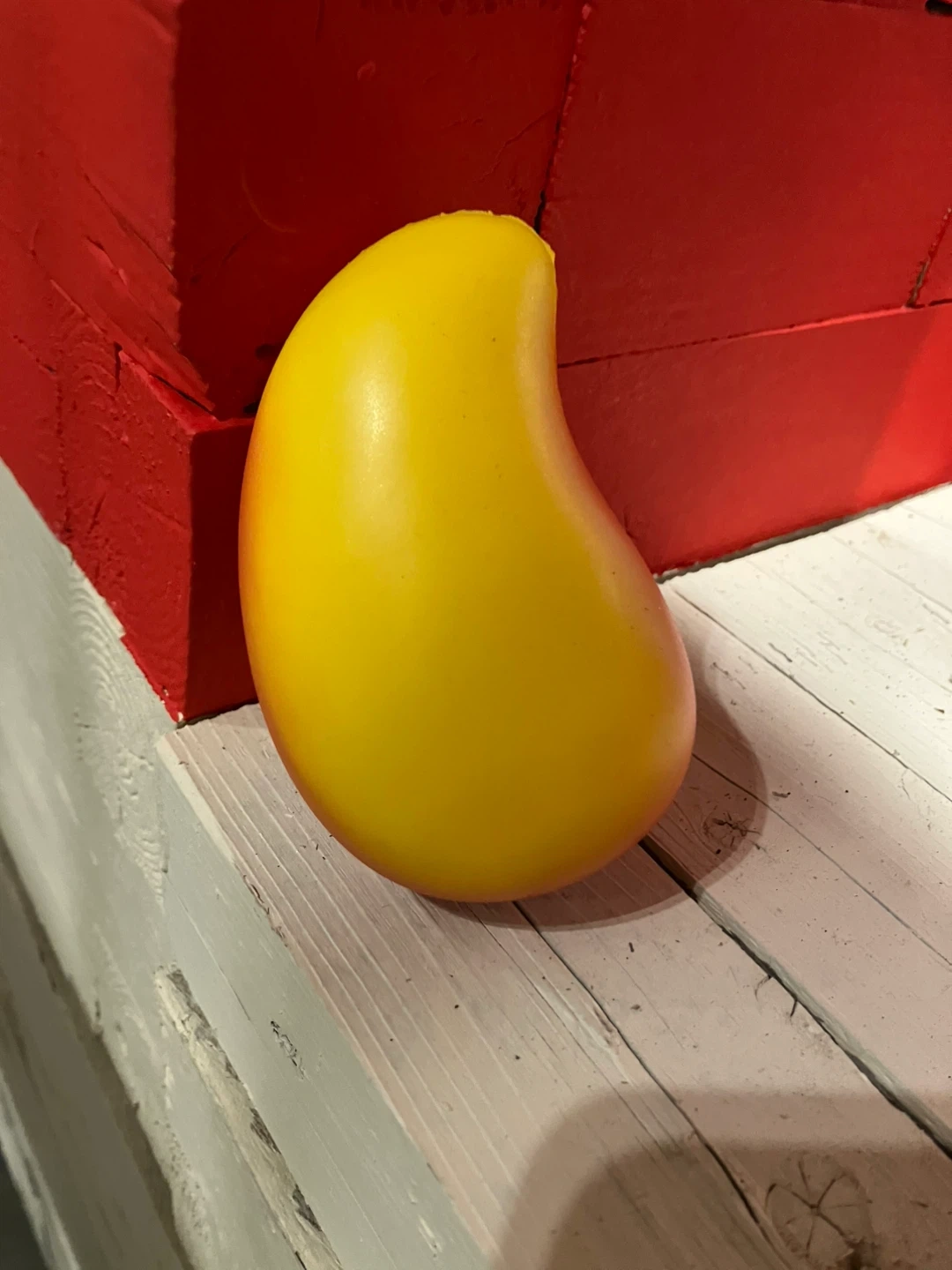 Here's a fun little stress reliever shaped like a mango from Skylights by Mango! It's bright yellow and fits comfortably in your hand