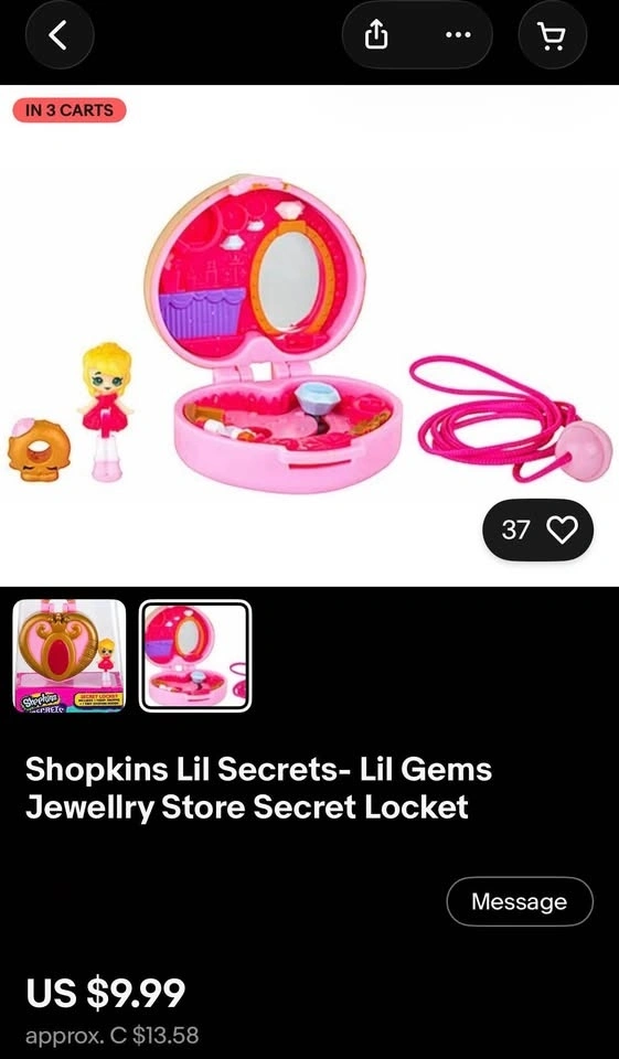 Buy & SellPolly Pocket & Shopkins Lil Secrets CompactsPolly Pocket & Shopkins Lil Secrets Compacts$20Incomplete sets. Asking $20 for all.WHERE TO MEETHomeView MapSELLERKateWilloughby211 review0 chats·0 favorites·0 viewsSEND CHAT TO SELLERHi Kate! I’m interested in your listing.Hi Kate! I’m interested in your listing.Get the Karrot app to chatSign In to chat