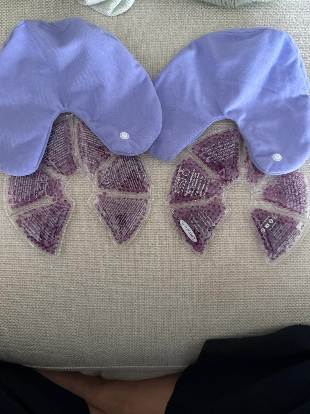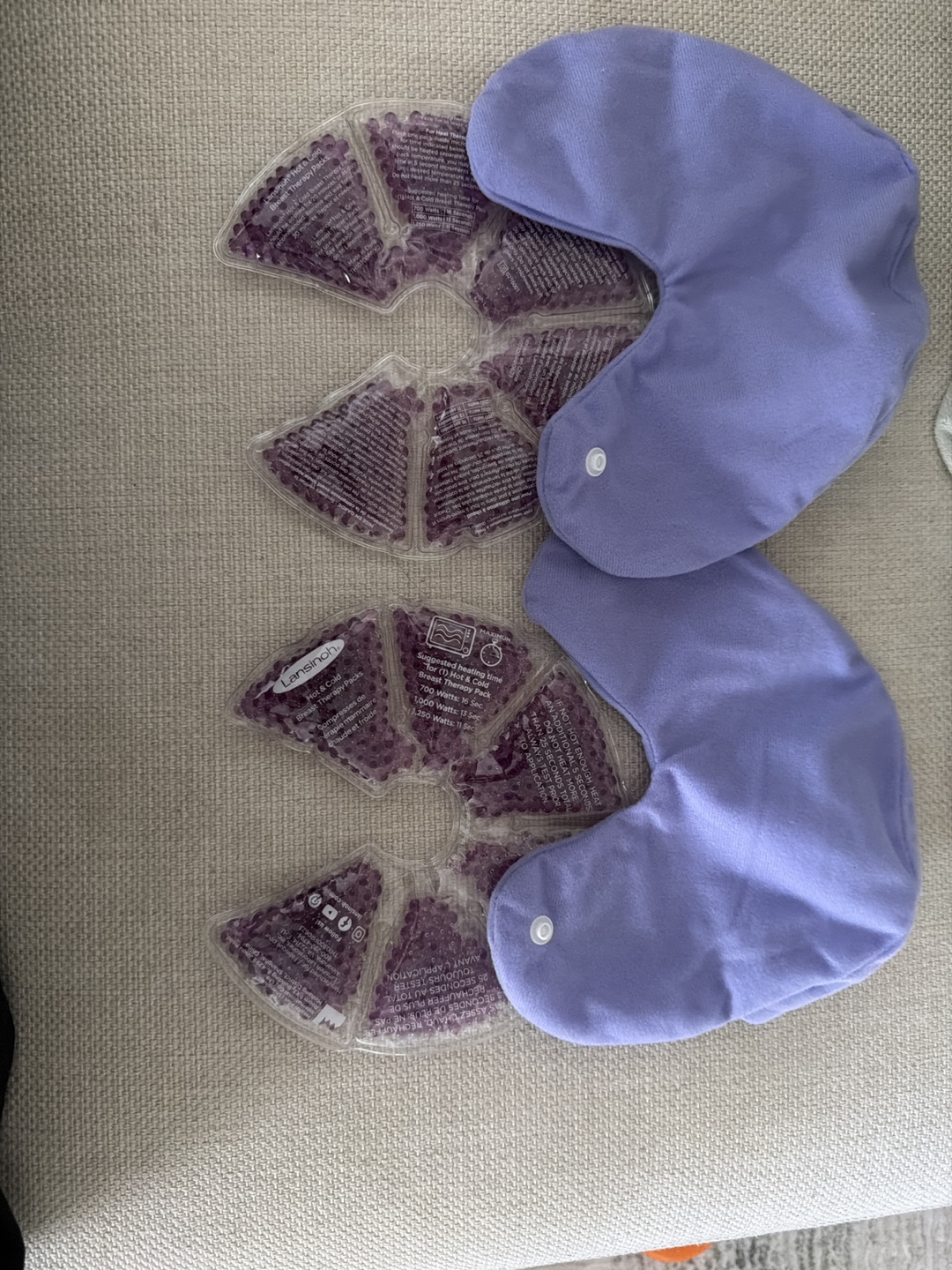 These Lansinoh breast therapy packs are designed for soothing relief. They can be used hot or cold. Each pack is a soft lavender colour.