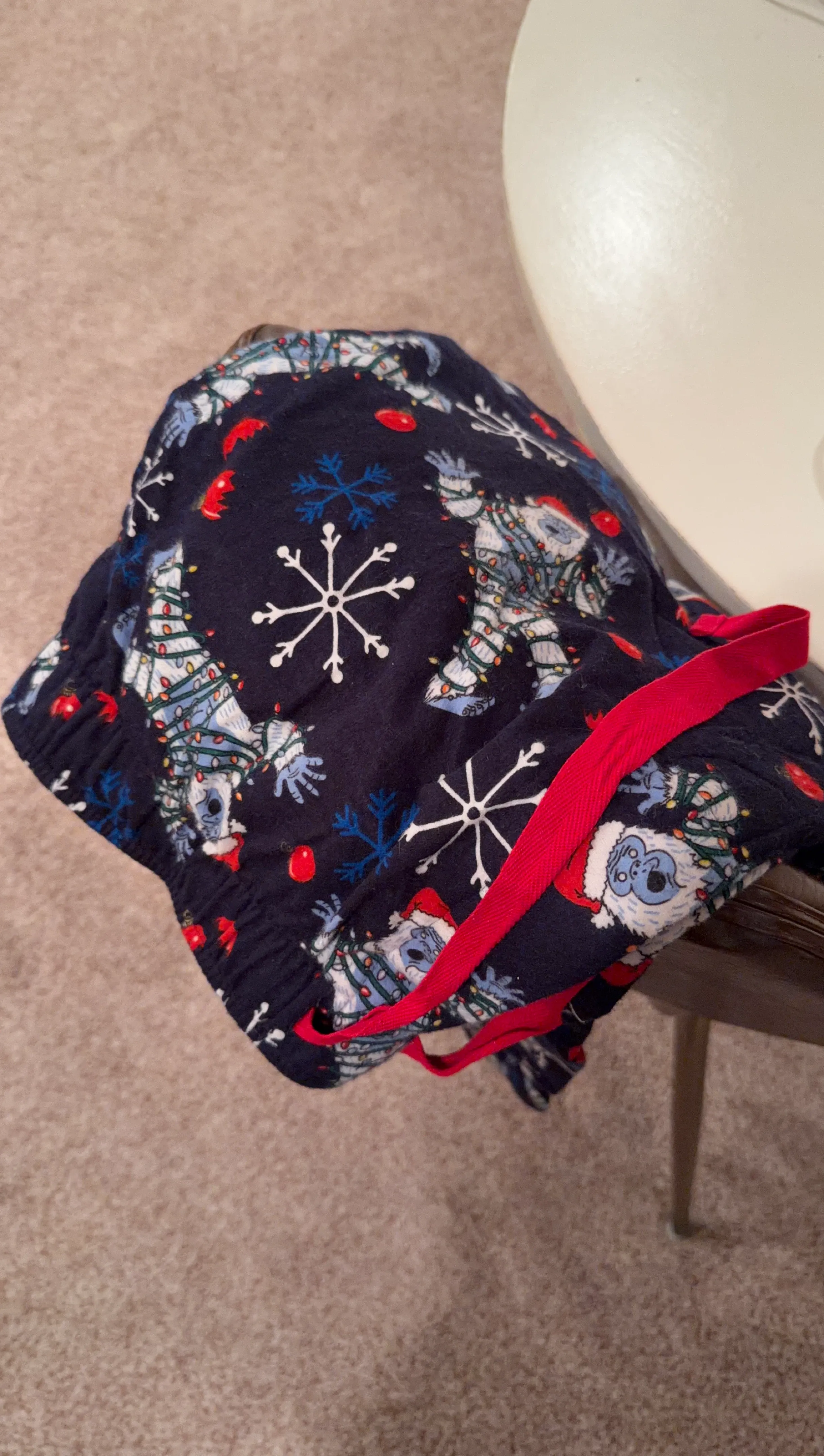 Varsity Sleepwear pajama pants in size L. Made with 100% cotton. Features a festive navy blue pattern with snowmen and snowflakes. My husband needed a different size, these are new, never been worn!