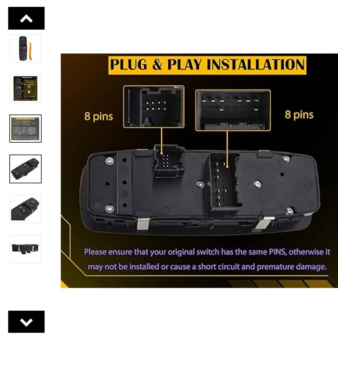 This A-Premium master power window switch is designed for Ram 1500 and 2500 models from 2013-2021. It's a front left driver's side replacement with auto up/down functions for the windows. This switch features 8 pins and is plug-and-play for easy installation.